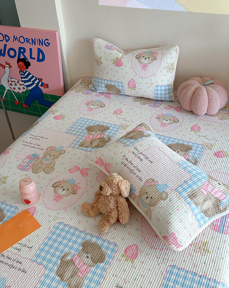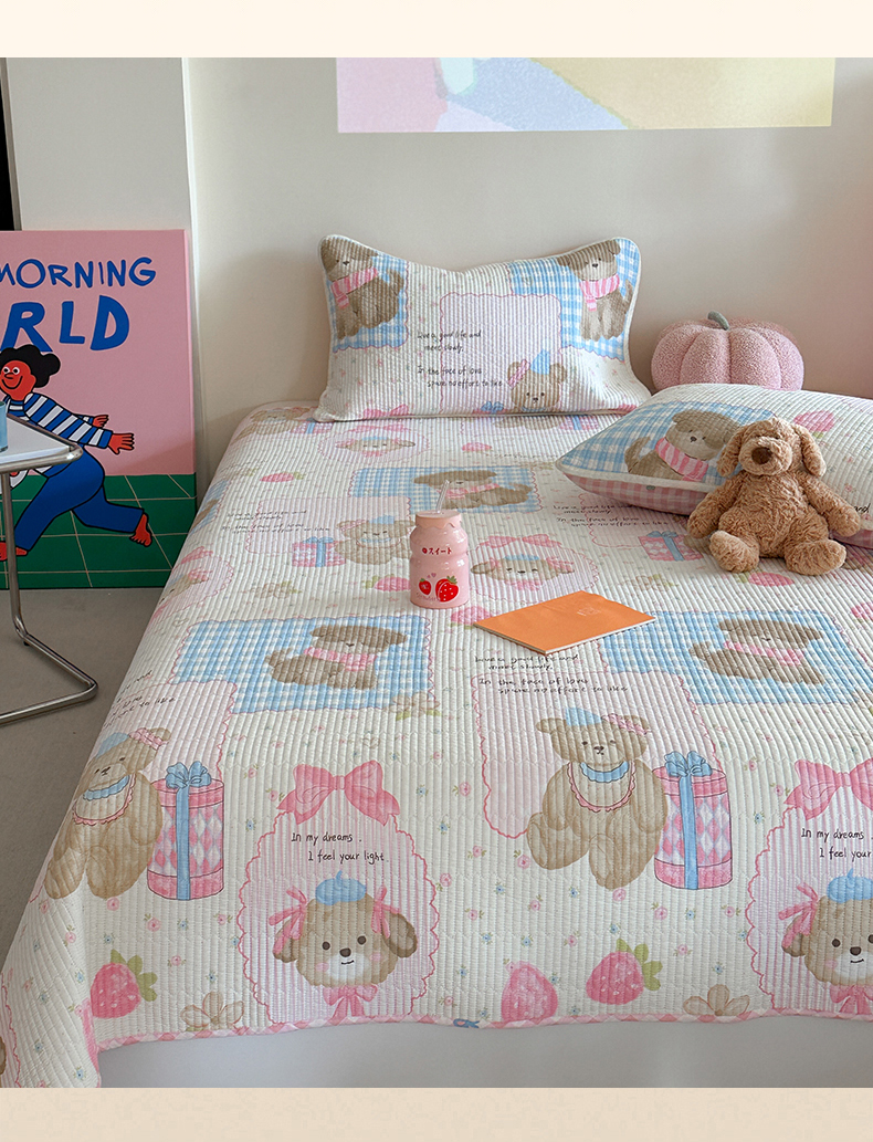 麦伦家居 2025新款高温砂洗全棉床盖印花床盖 甜甜心事