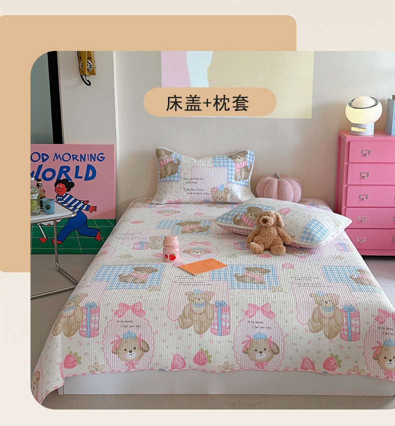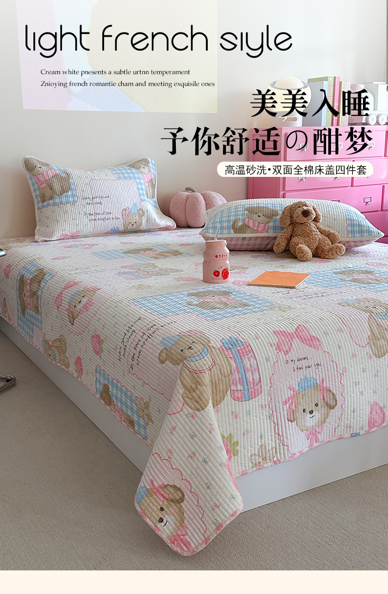 • 91家纺网 家纺一手货源 找家纺 麦伦家居 2025新款高温砂洗全棉床盖印花床盖 甜甜心事