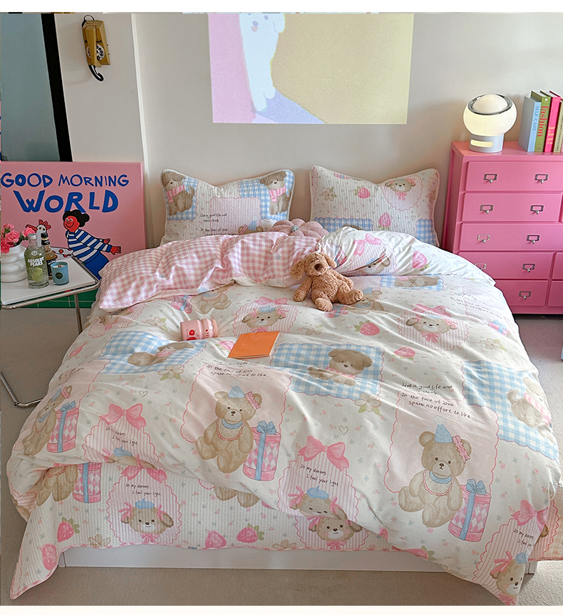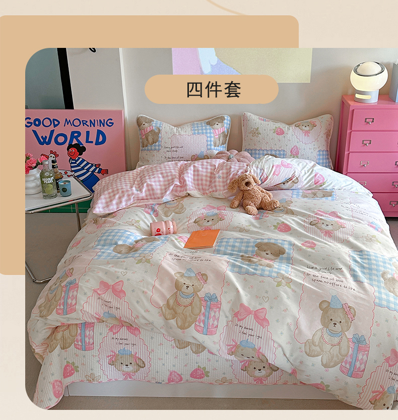 (总)麦伦家居 2026春夏新品13372全棉卡通小清新四件套,春日花语,焦糖小熊,笔记本,宾果时光,果子象,含羞草,蝴蝶结花朵粉,机灵猫,咖啡猫,快乐小星星,蕾丝小兔,漫漫花香,莓果熊,平安狗狗,时光里,线条汪汪,小玫瑰紫,紫樱桃