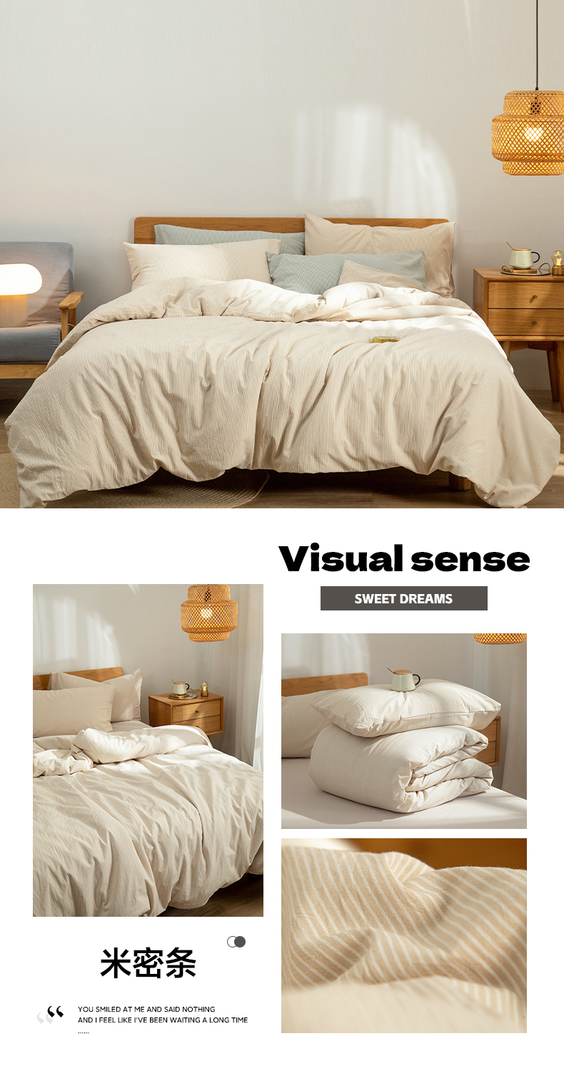 玖弘家居 2025新款水洗棉单被套 米密条