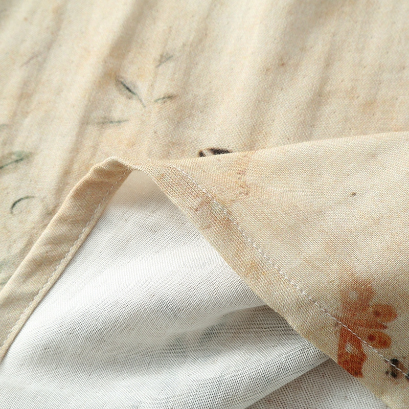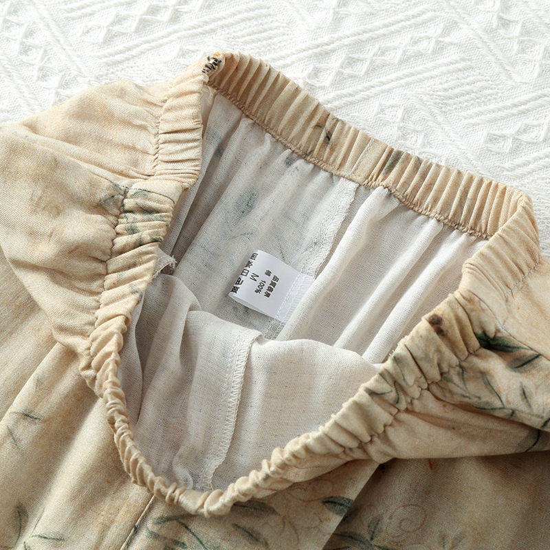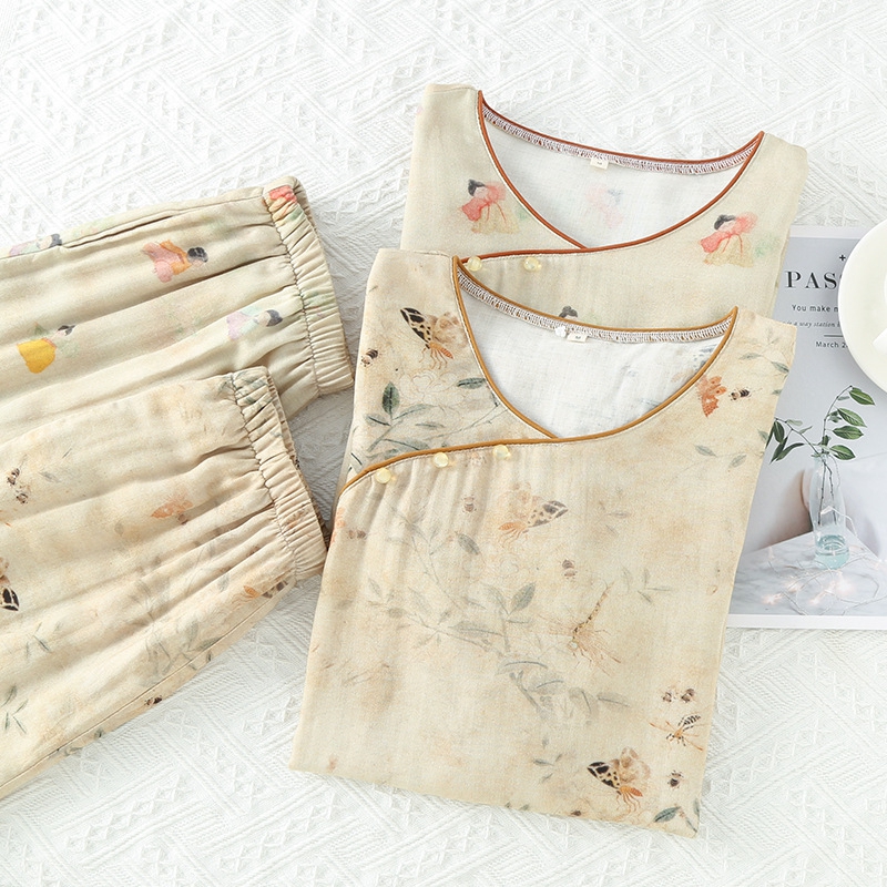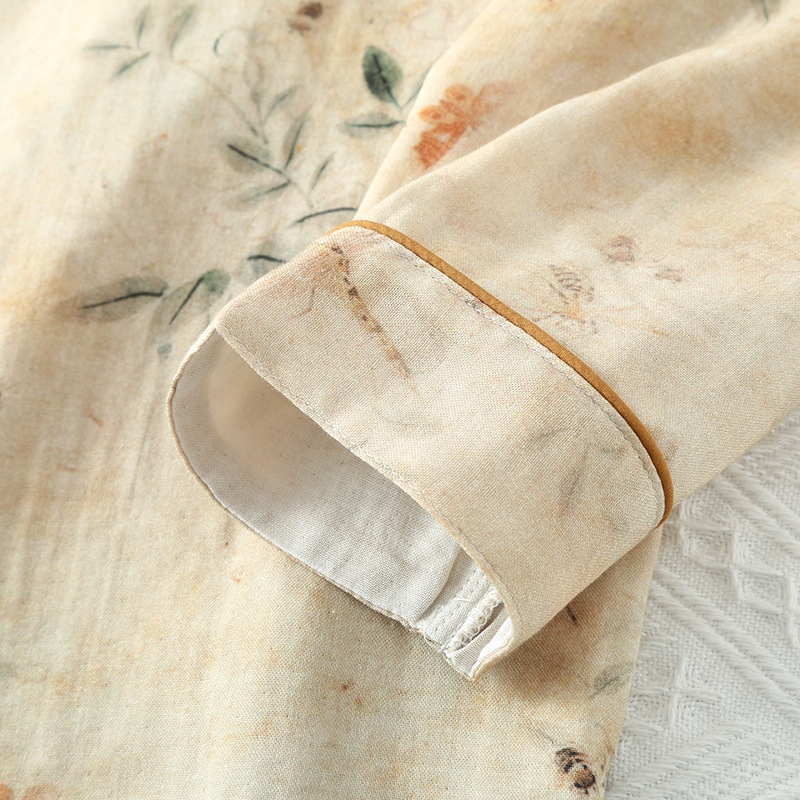 (总)洛兰沙家居馆 2025新款情侣款全棉双层男女家居服简约睡衣套装长袖长裤格子简约风舒适款,男士莫奈花园长袖长裤套装-卡其色,女士莫奈花园长袖长裤套装-卡其色