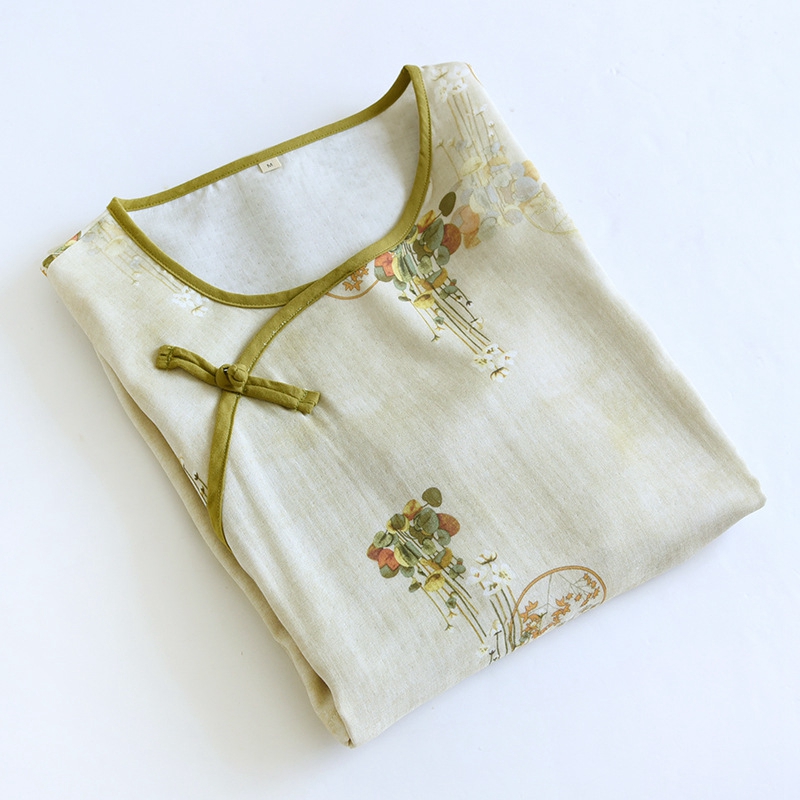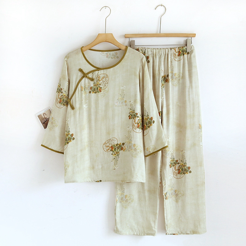 商品名称:洛兰沙家居馆【只代发】【只代发】 2025新款国风竹纤维鸟语花香春夏女睡衣大码长袖长裤自带凉感休闲套装 ls1313