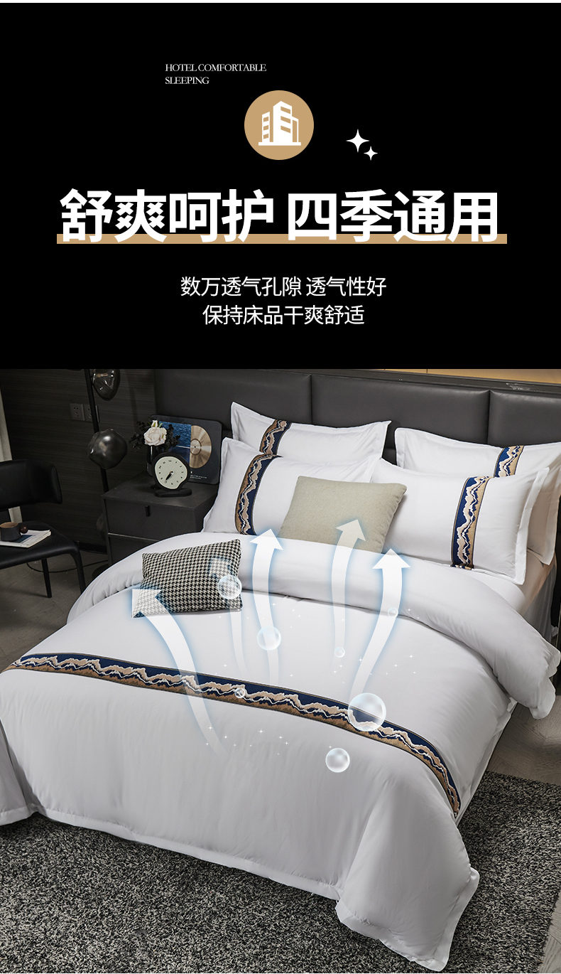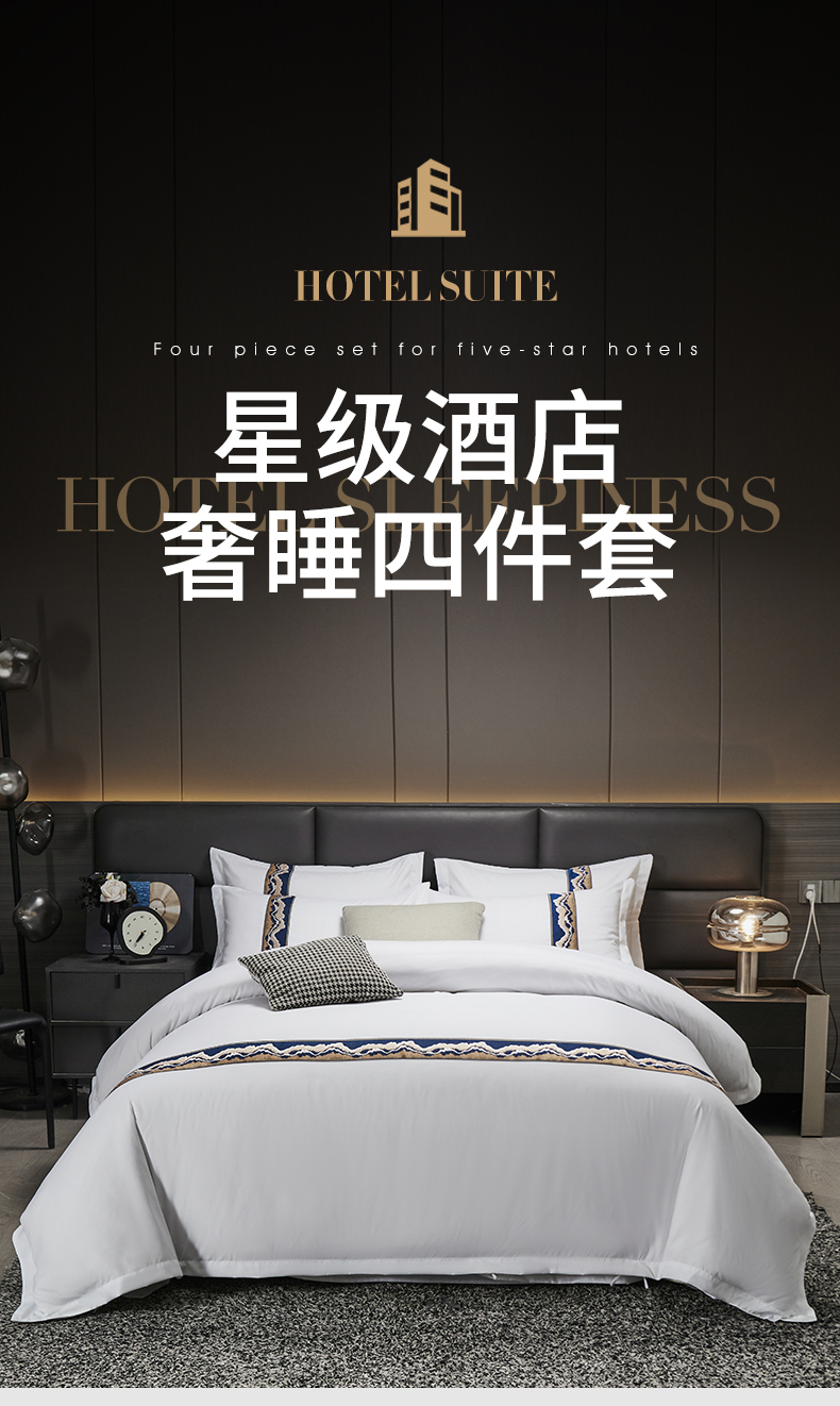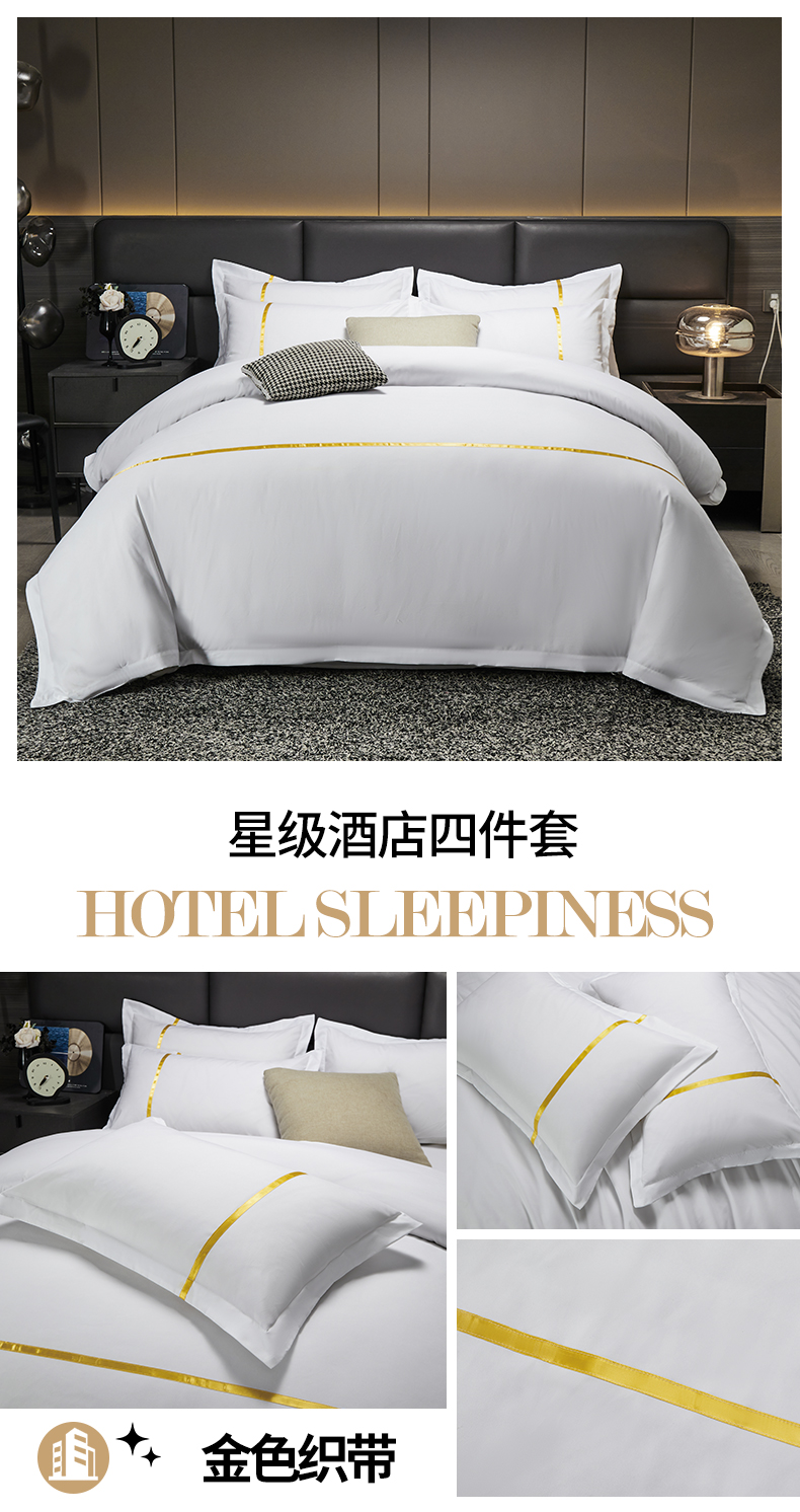 (总)小老弟 2025新款酒店用品酒店布草全棉纯棉60S酒店四件套,白色