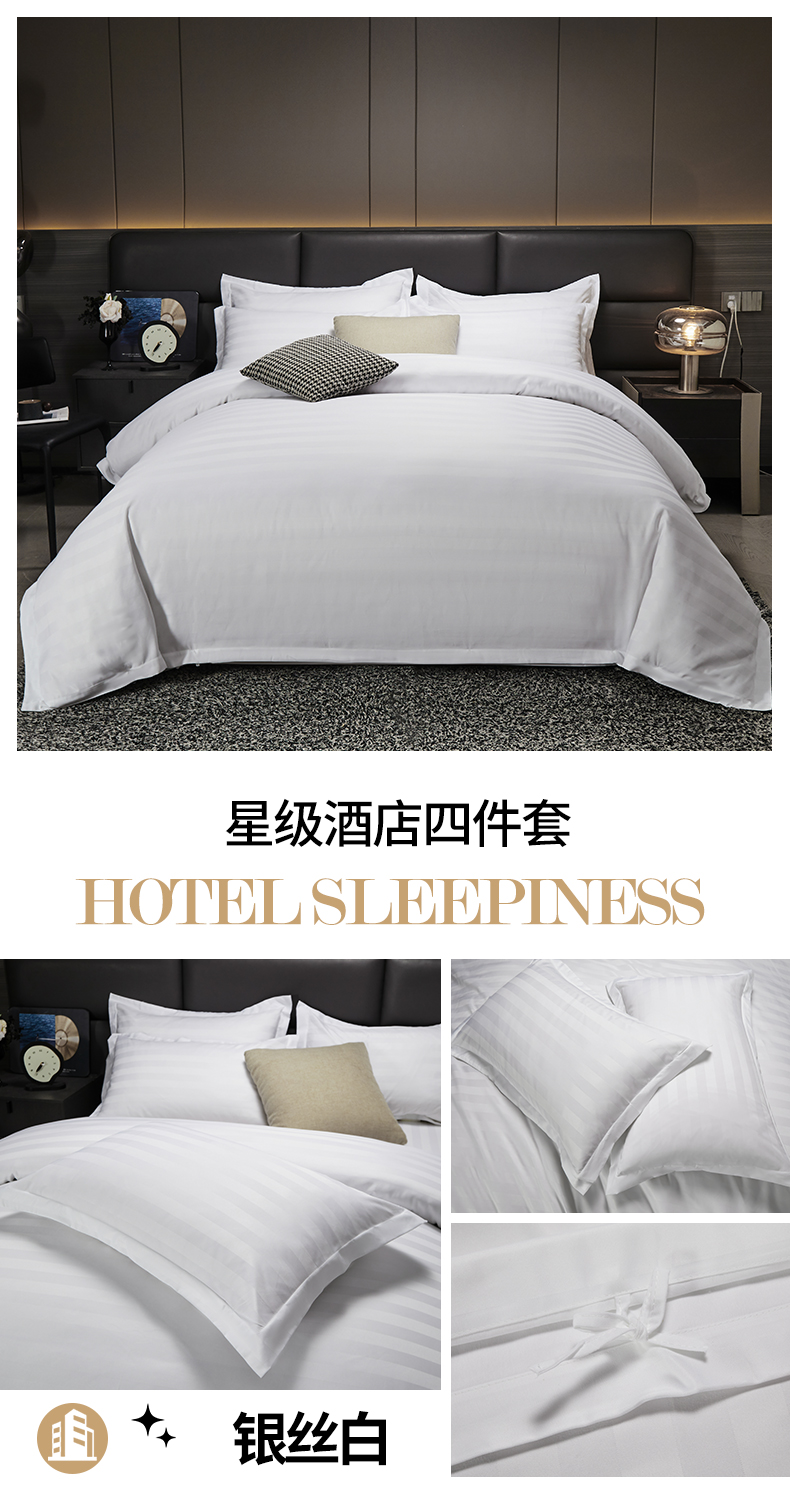 商品名称:小老弟 2025新款星级酒店纯色酒店四件套酒店布草 珍珠白拉链款