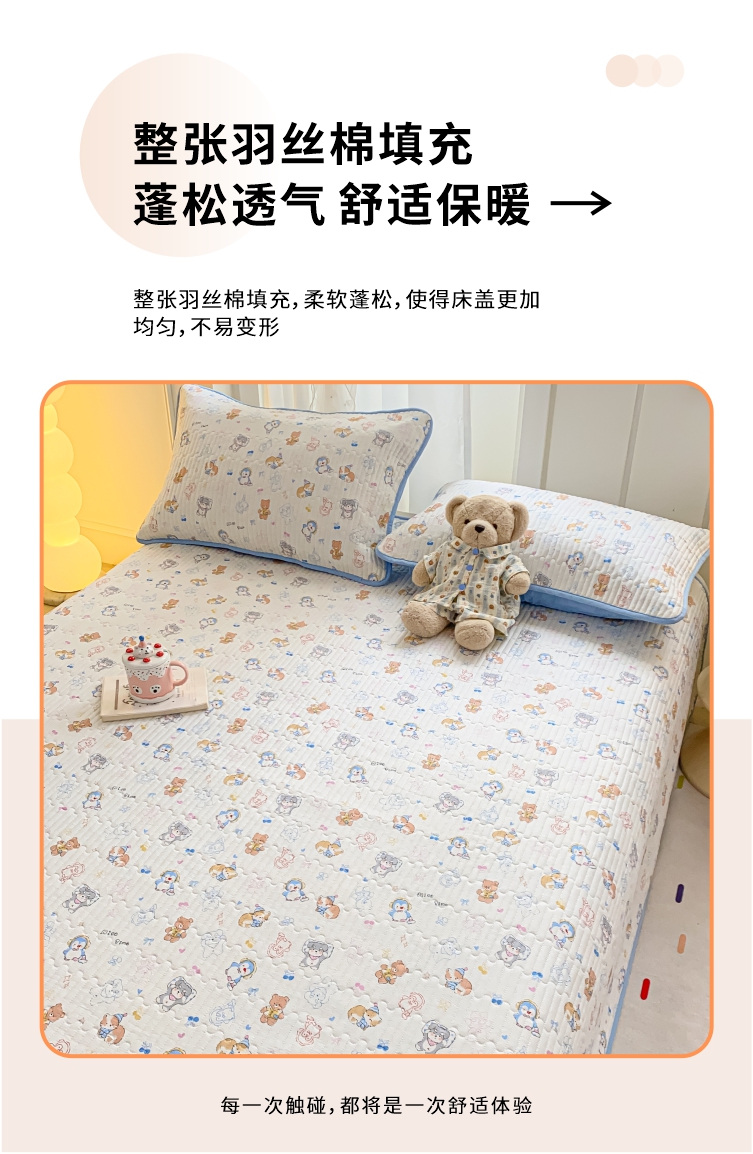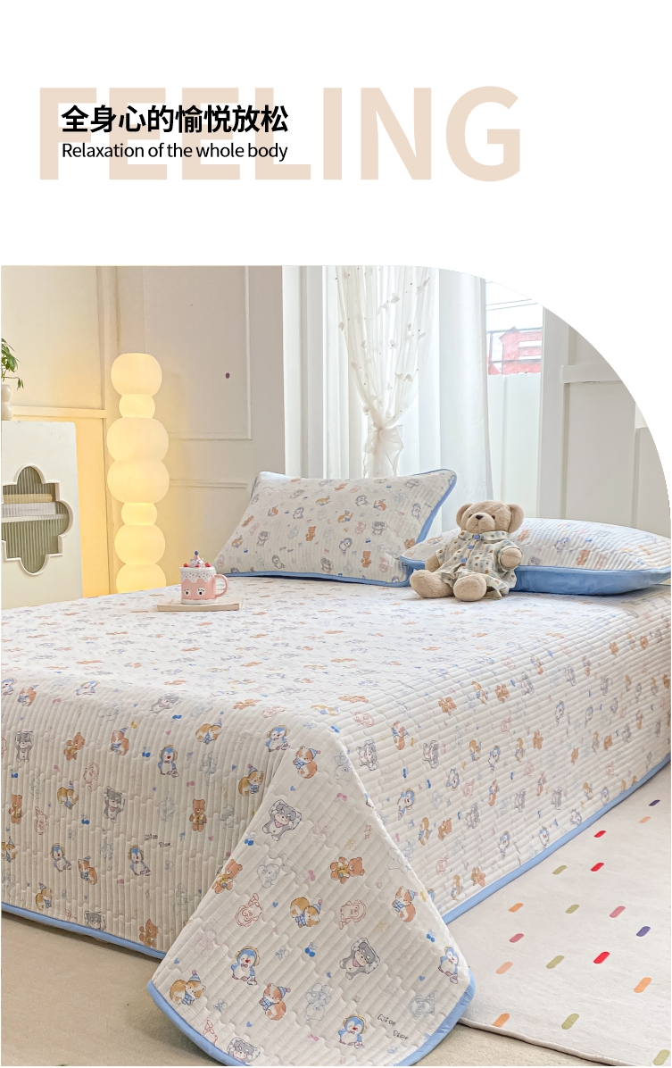 顺顺家纺 2025新款全棉卡通夹棉床盖 萌宠大会