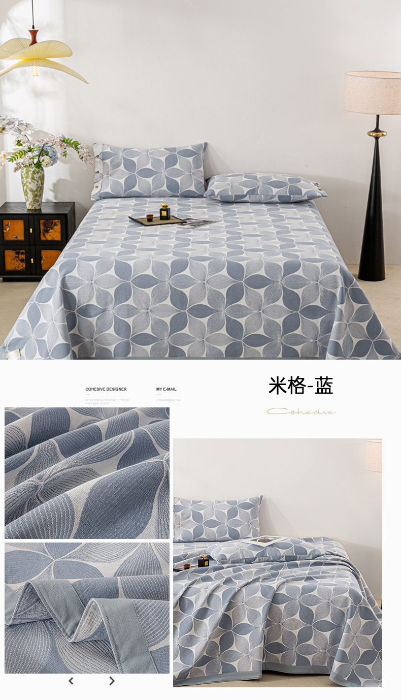 玉相逢2025新款全棉色织老粗布凉席 米格-蓝