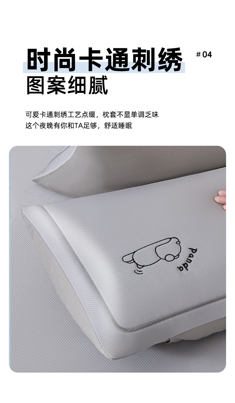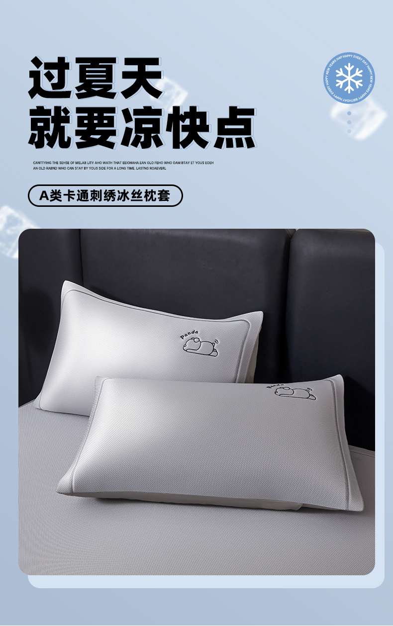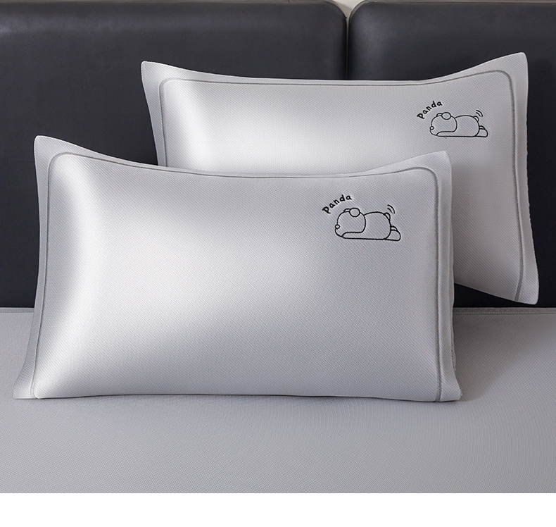 商品名称:全季家居 2025新款全季家居A类碳光萌趣熊猫刺绣枕套 银灰