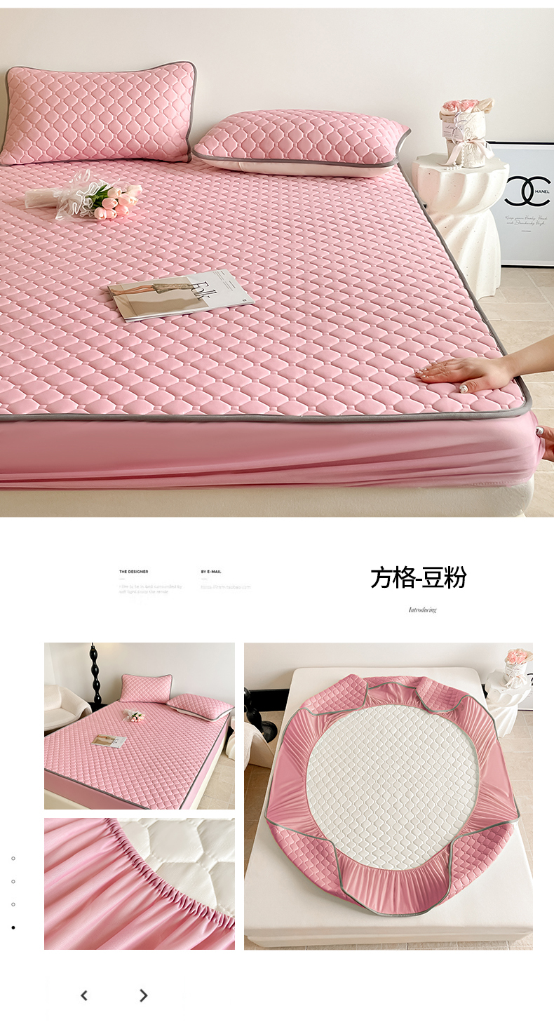 2025新款加厚0.5纯色凉感丝单床笠乳胶凉席 方格-豆粉
