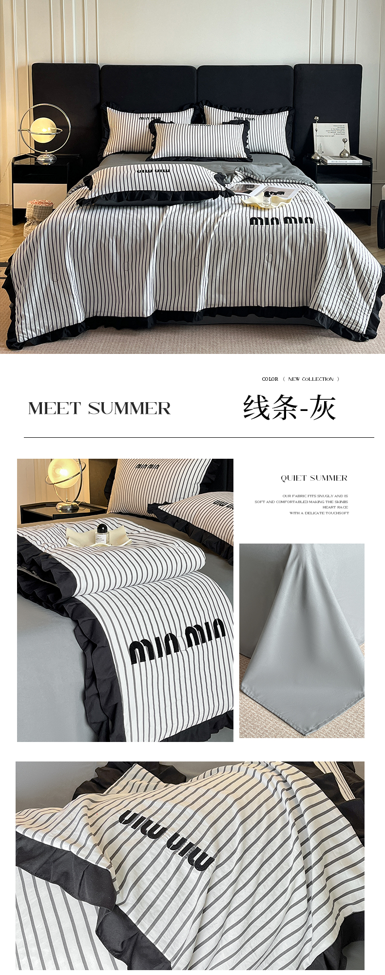 商品名称:苏源家居 2025新款亲肤棉刺绣夏被四件套-线条系列 线条-灰