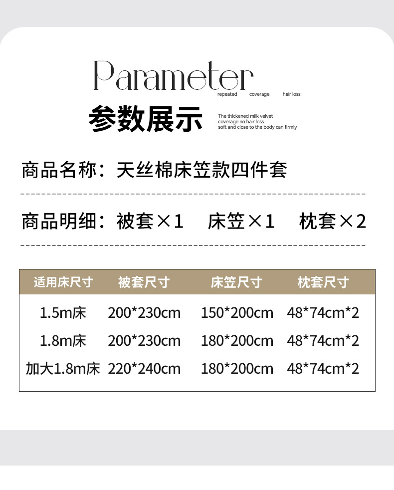 1.5m床笠款四件套 | ¥258.00 |