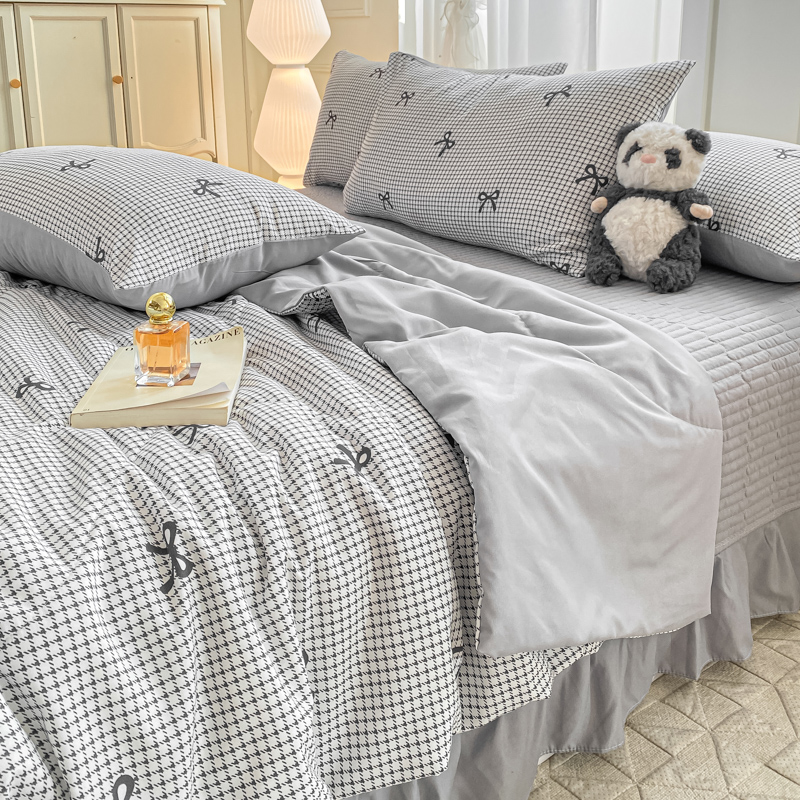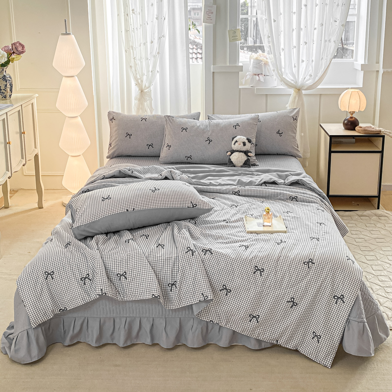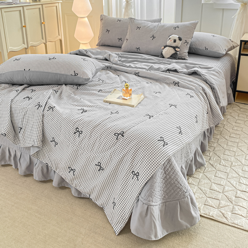 一比一家纺 2025新款针织双层纱夏被床盖四件套单夏被单床盖单品 格韵