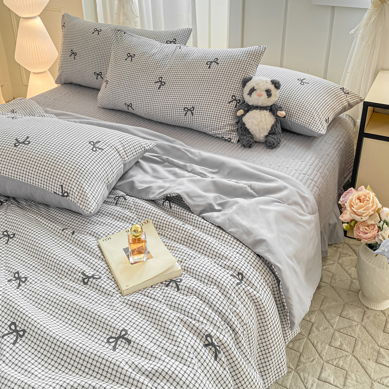 商品名称:一比一家纺 2025新款针织双层纱夏被床盖四件套单夏被单床盖单品 格韵