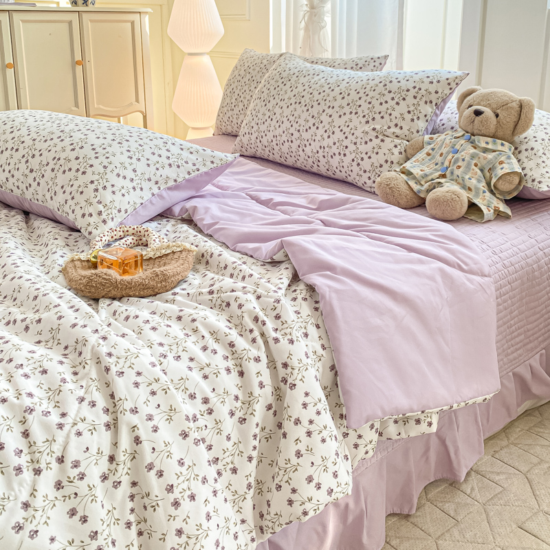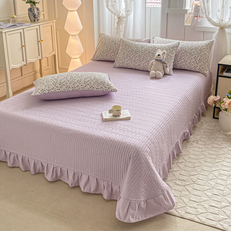 商品名称:一比一家纺 2025新款针织双层纱夏被床盖四件套单夏被单床盖单品 紫罗兰