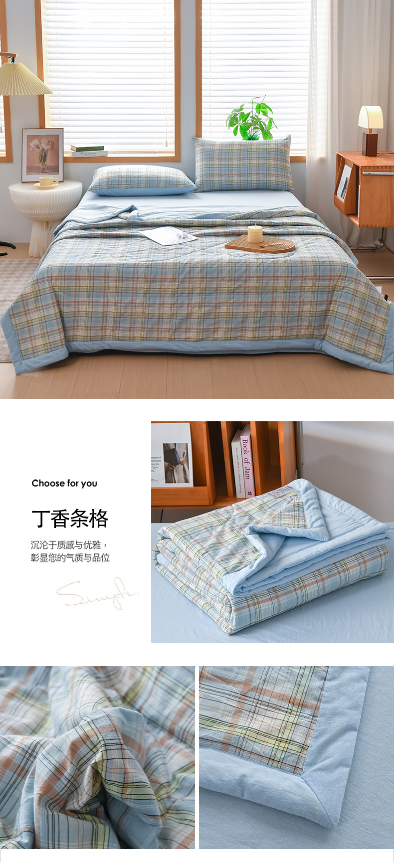 商品名称:圣尔雅家纺 2025新款里外全棉色织夏被新疆棉花被纯棉被子空调被夏凉被 丁香条格