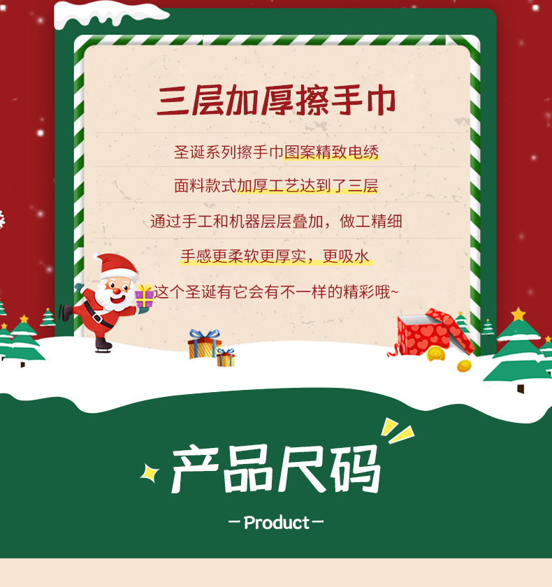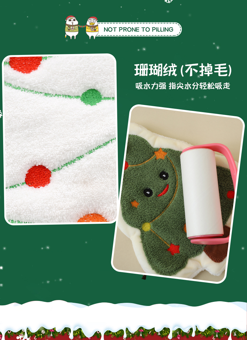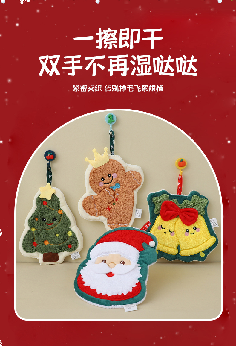 商品名称:(总)彩虹毛巾 2025新款珊瑚绒卡通可挂式加厚吸水不掉毛可爱小毛巾厨房洗手间挂巾便携式懒人擦手布-圣诞系列
