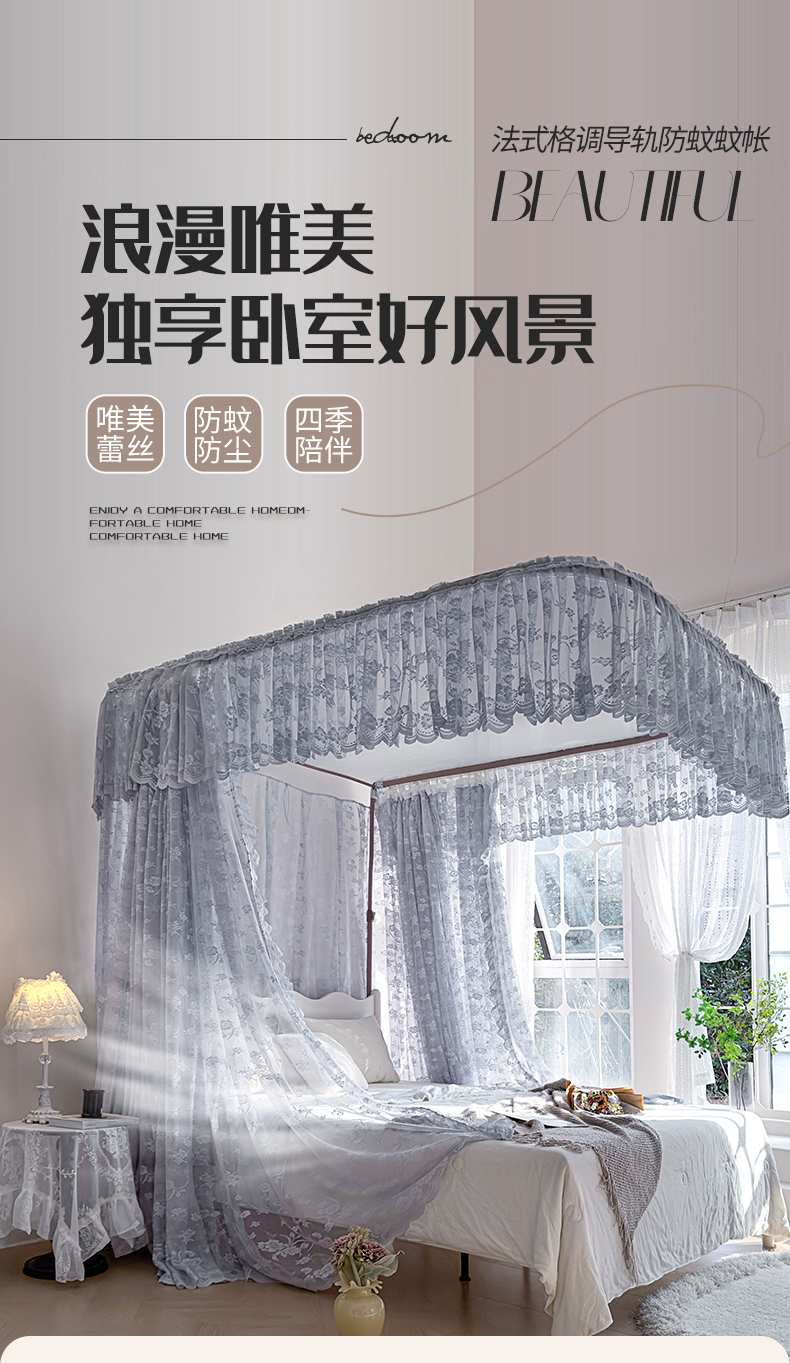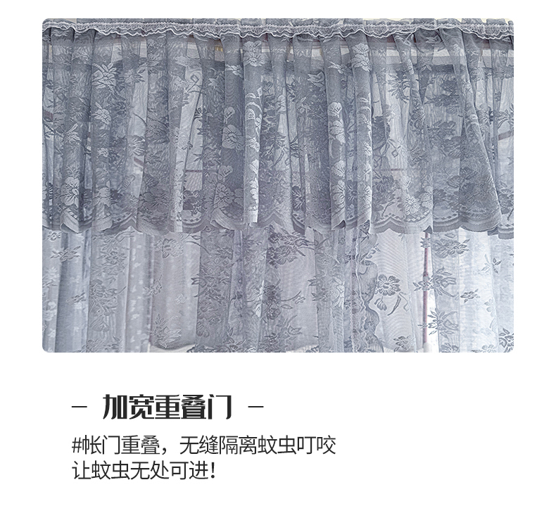 商品名称:夏彩 2025新款双轨铁接口带皮条铝合金蕾丝轨道蚊帐-88537 88537-蓝灰色