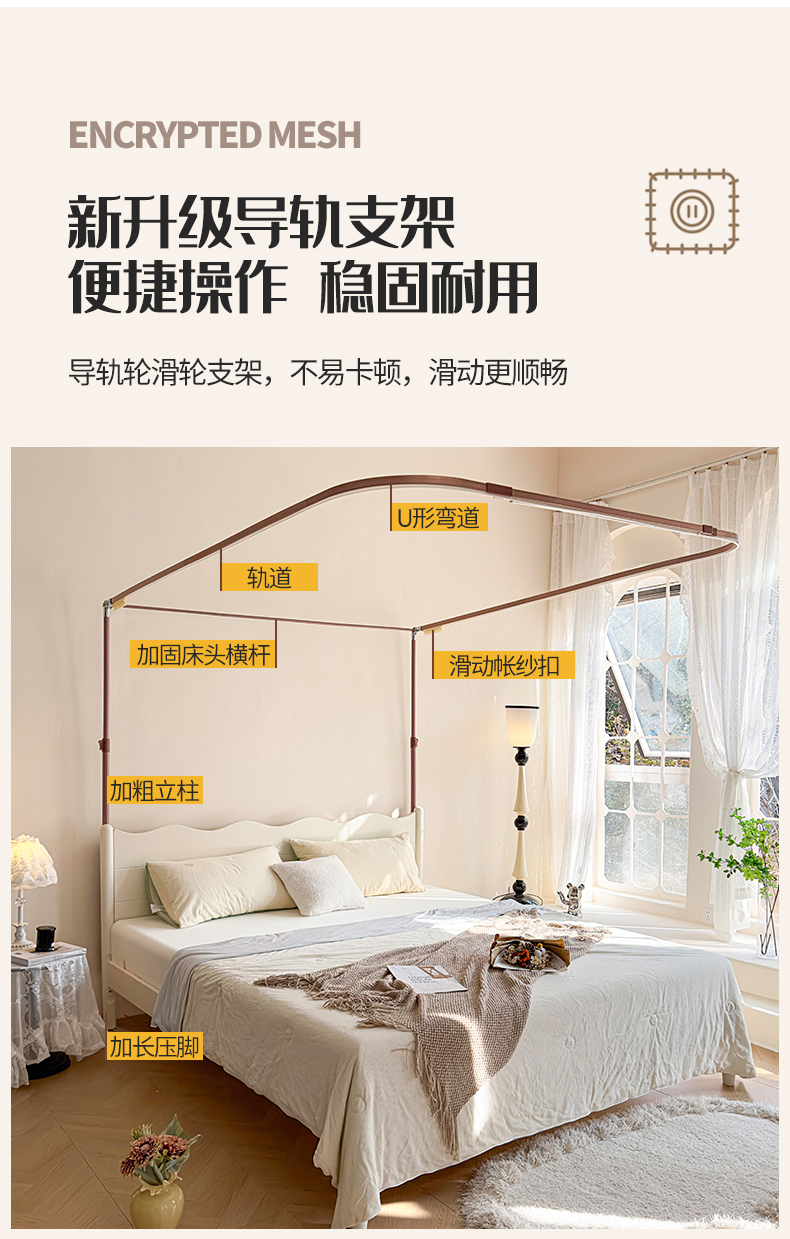 (总)夏彩 2025新款浪漫唯美T+U床笠式坐床外穿防摔蚊帐-88610,886610冰海蓝,886610极光白,886610浅粉玉,886610浅水蓝,886610蔷薇粉,886610杏仁黄,886610雅士灰