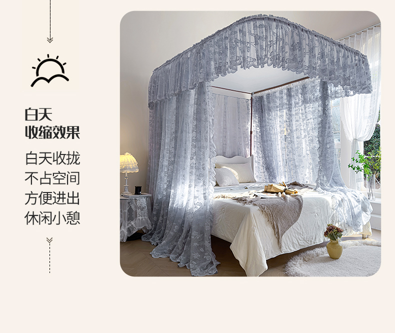 (总)夏彩 2025新款豪华宫廷蕾丝睡帐-88599,88599-公主白,88599-公主粉,88599-公主玉,88599-蓝灰色