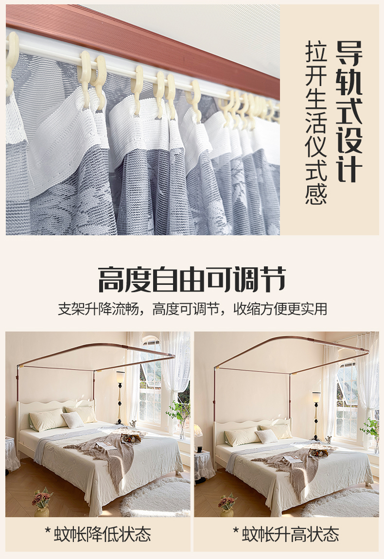 (总)夏彩 2025新款学生新款雪纺蕾丝强遮光可升降U型轨道蚊帐,茶悦时光,蝴蝶花,花音,浪漫花语,甜心玫瑰,叶韵,悦色