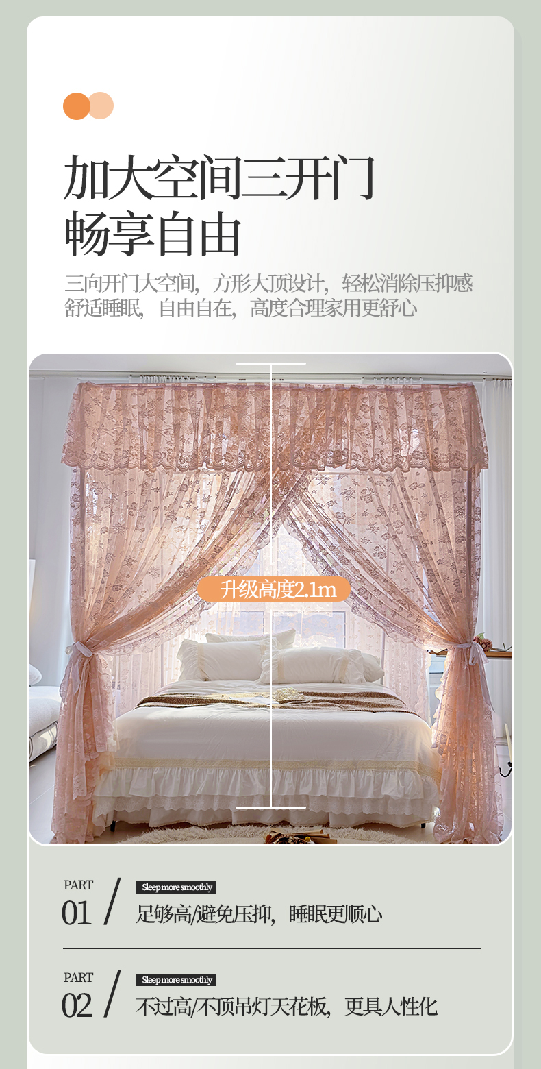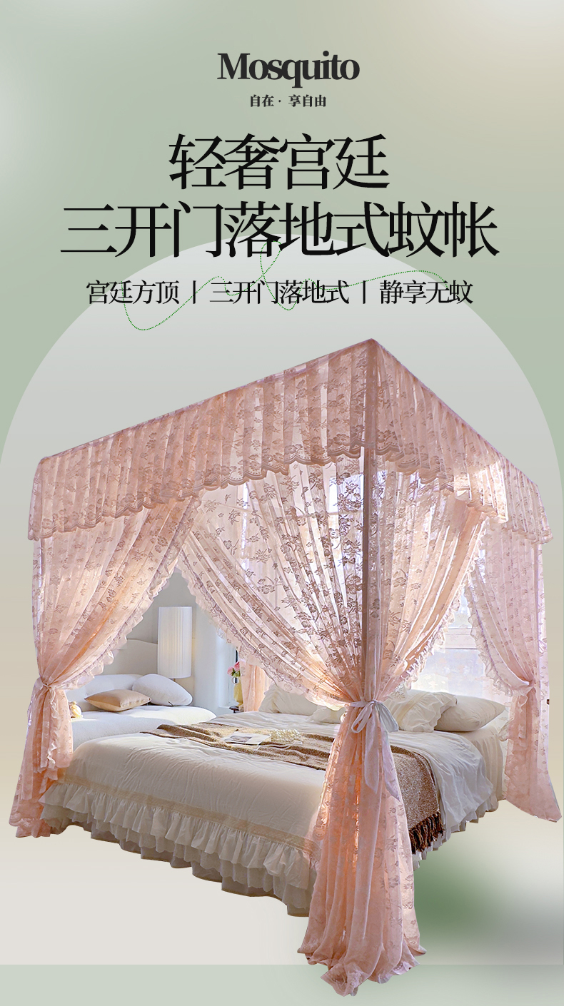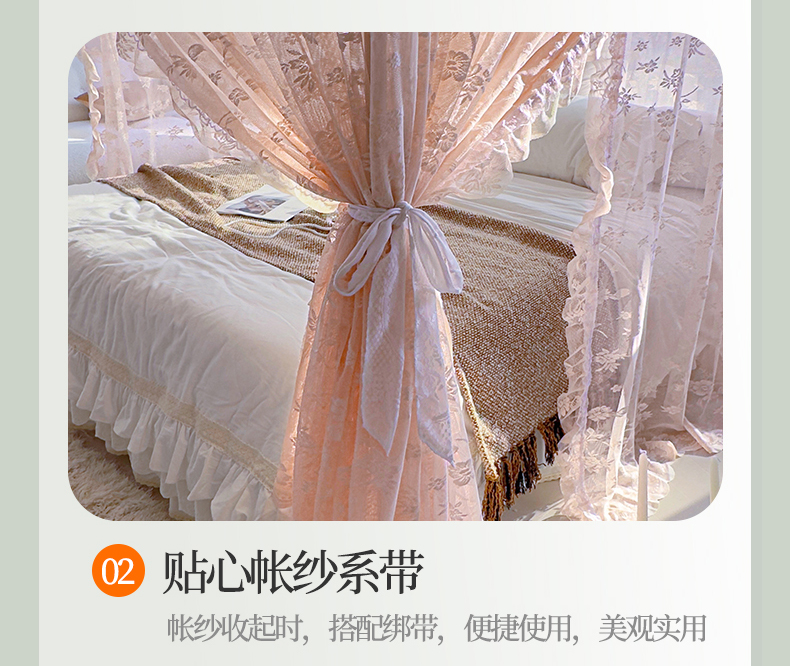 (总)夏彩 2025新款豪华宫廷蕾丝睡帐-88599,88599-公主白,88599-公主粉,88599-公主玉,88599-蓝灰色