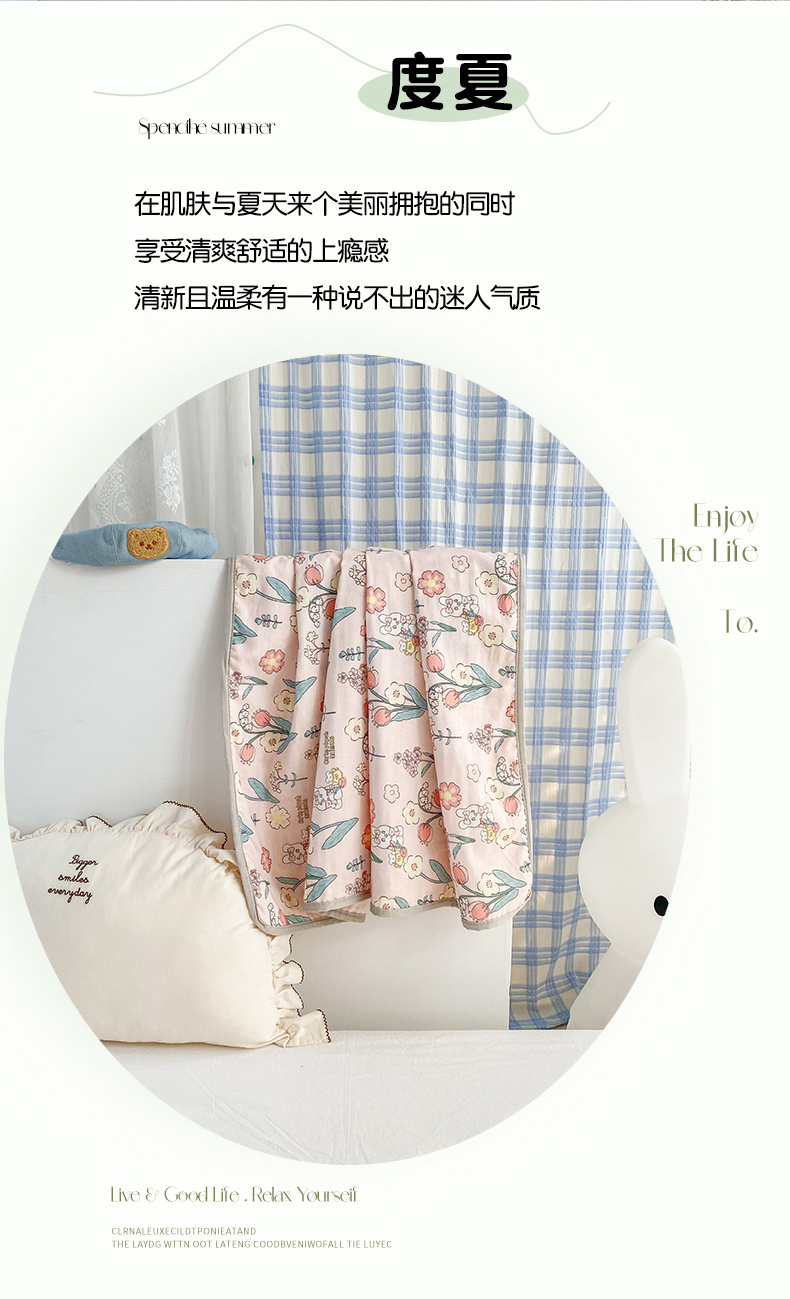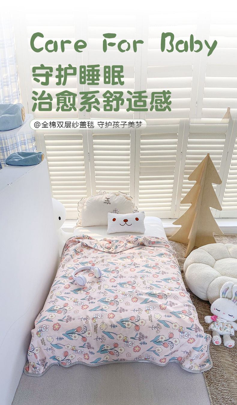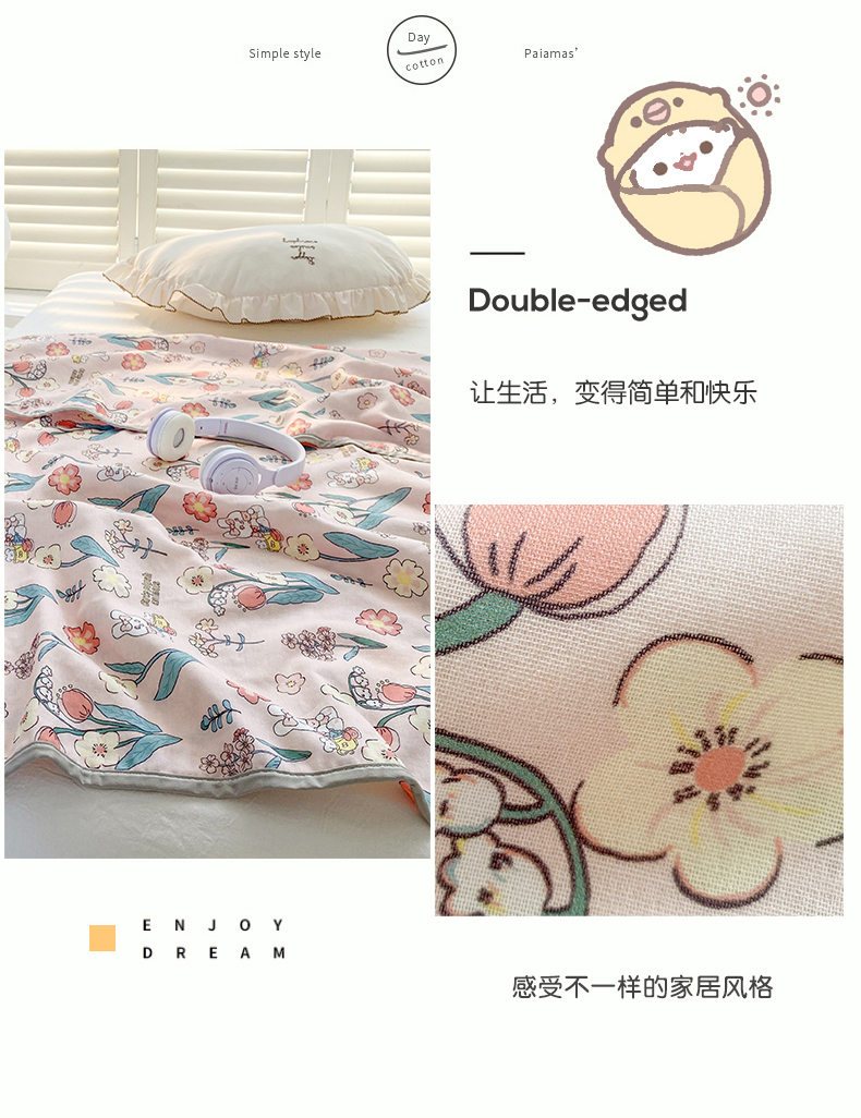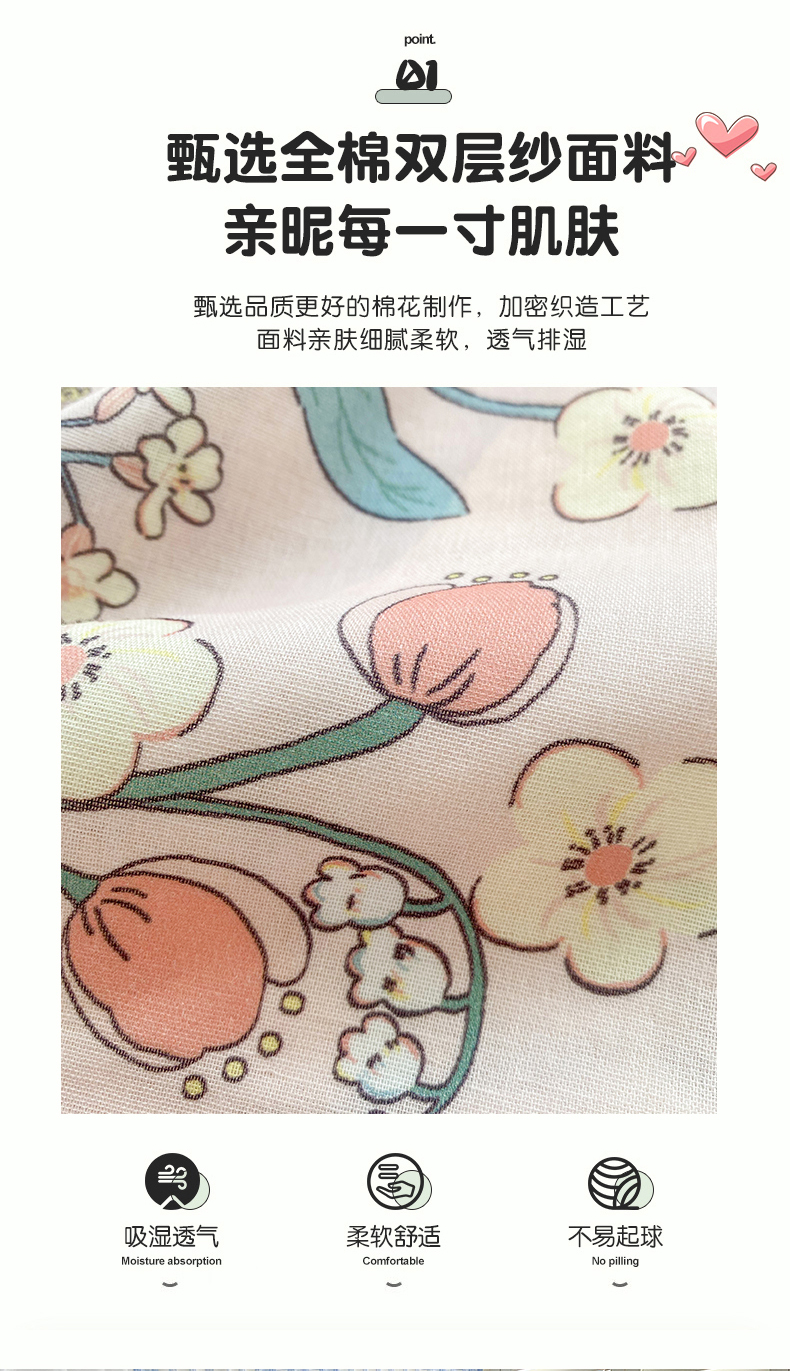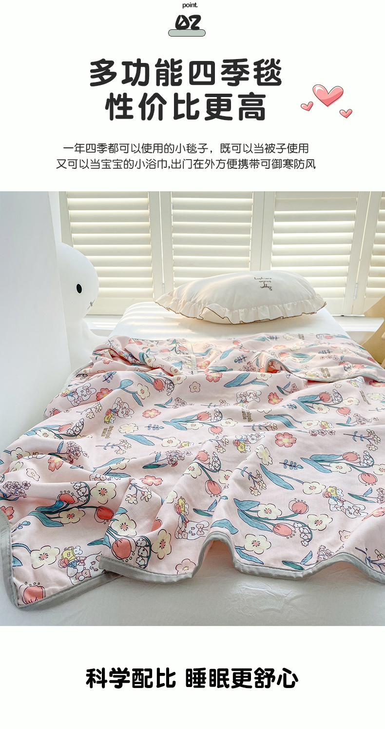 商品名称:潮邦 2025新款全棉双层纱多功能盖毯 心怡粉