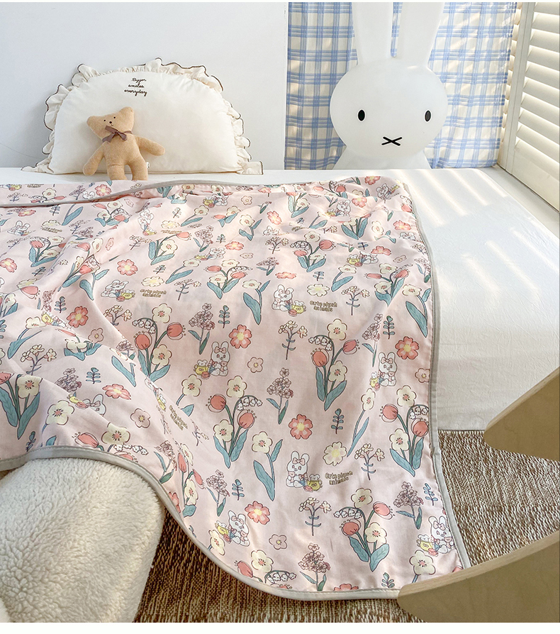 潮邦 2025新款全棉双层纱多功能盖毯 心怡粉