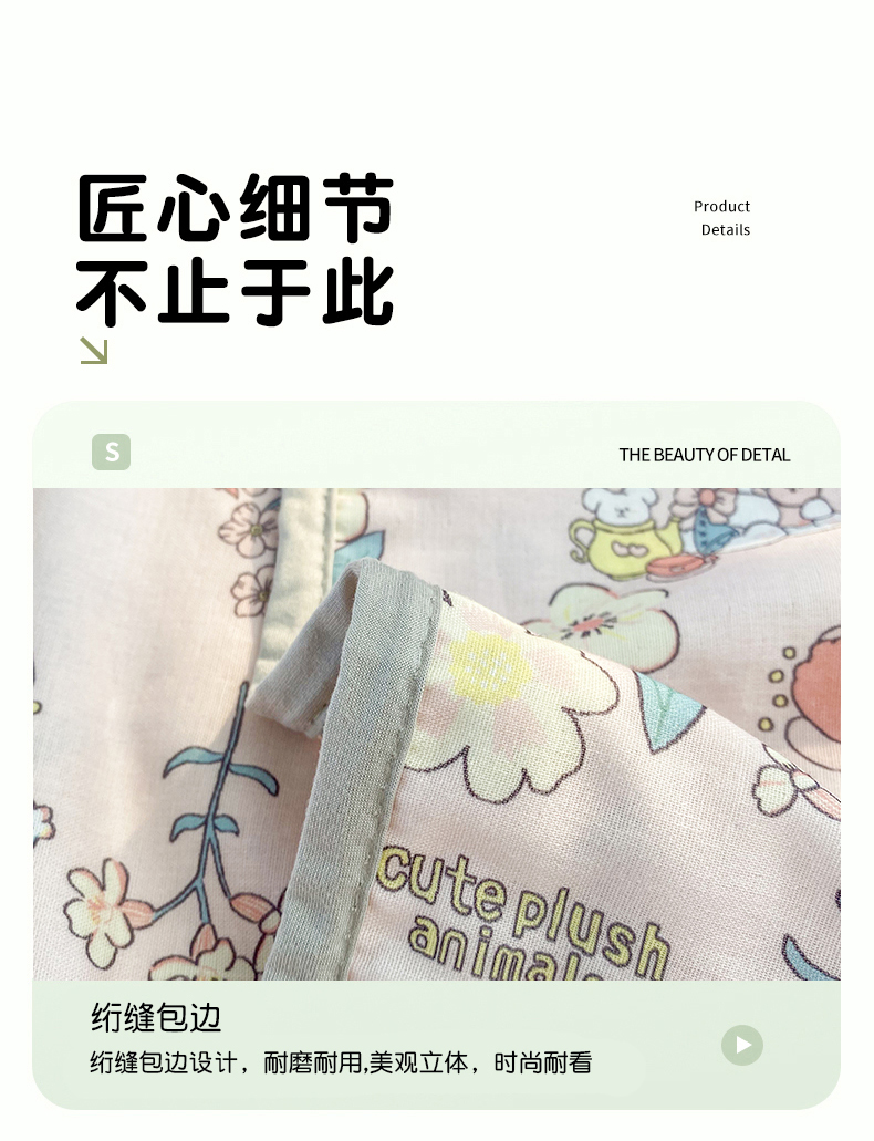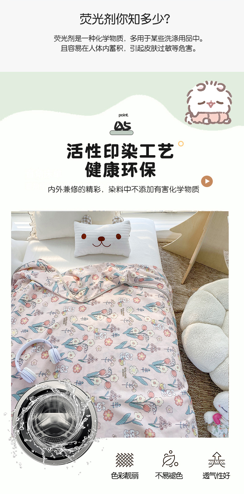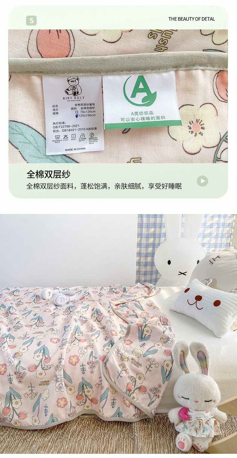 (总)潮邦 2025新款全棉双层纱多功能盖毯,白露-白,背包兔,彩虹糖,车厘子,动物派,秋之花,甜心字母,兔跳跳,兔之园,心怡粉,雨伞兔,棕熊
