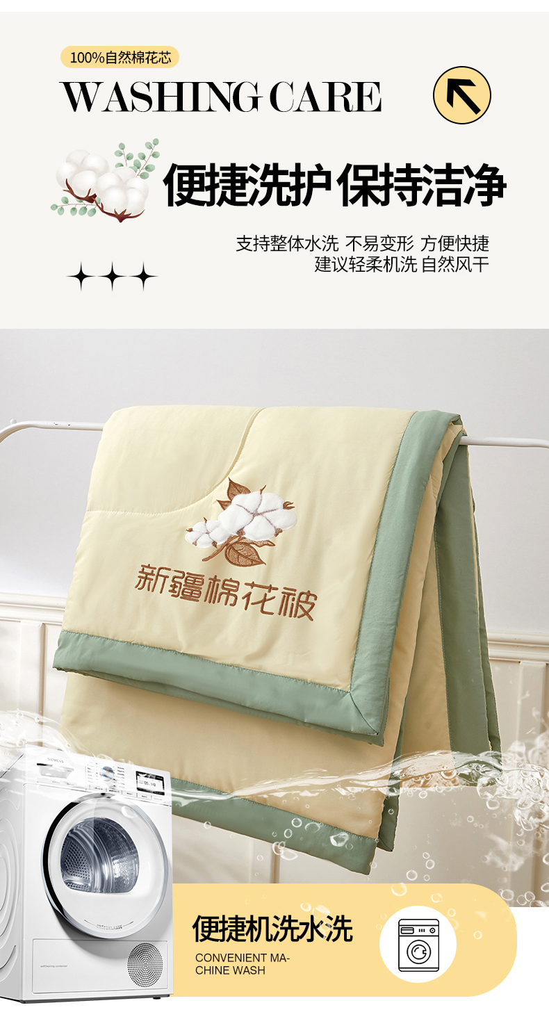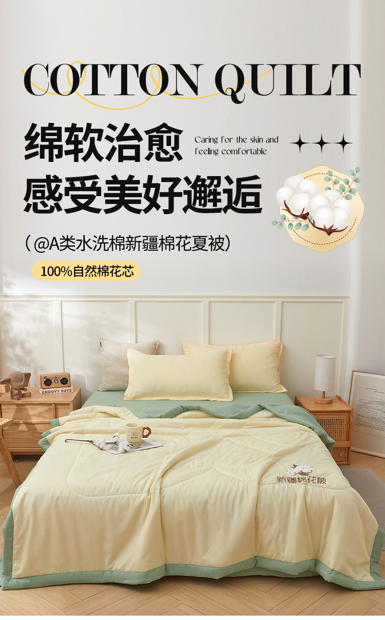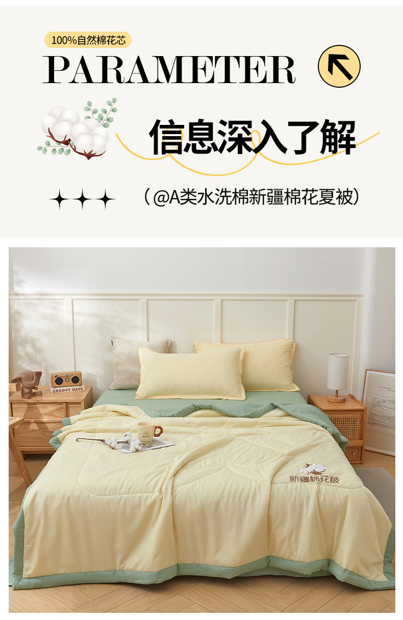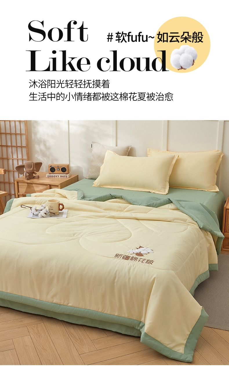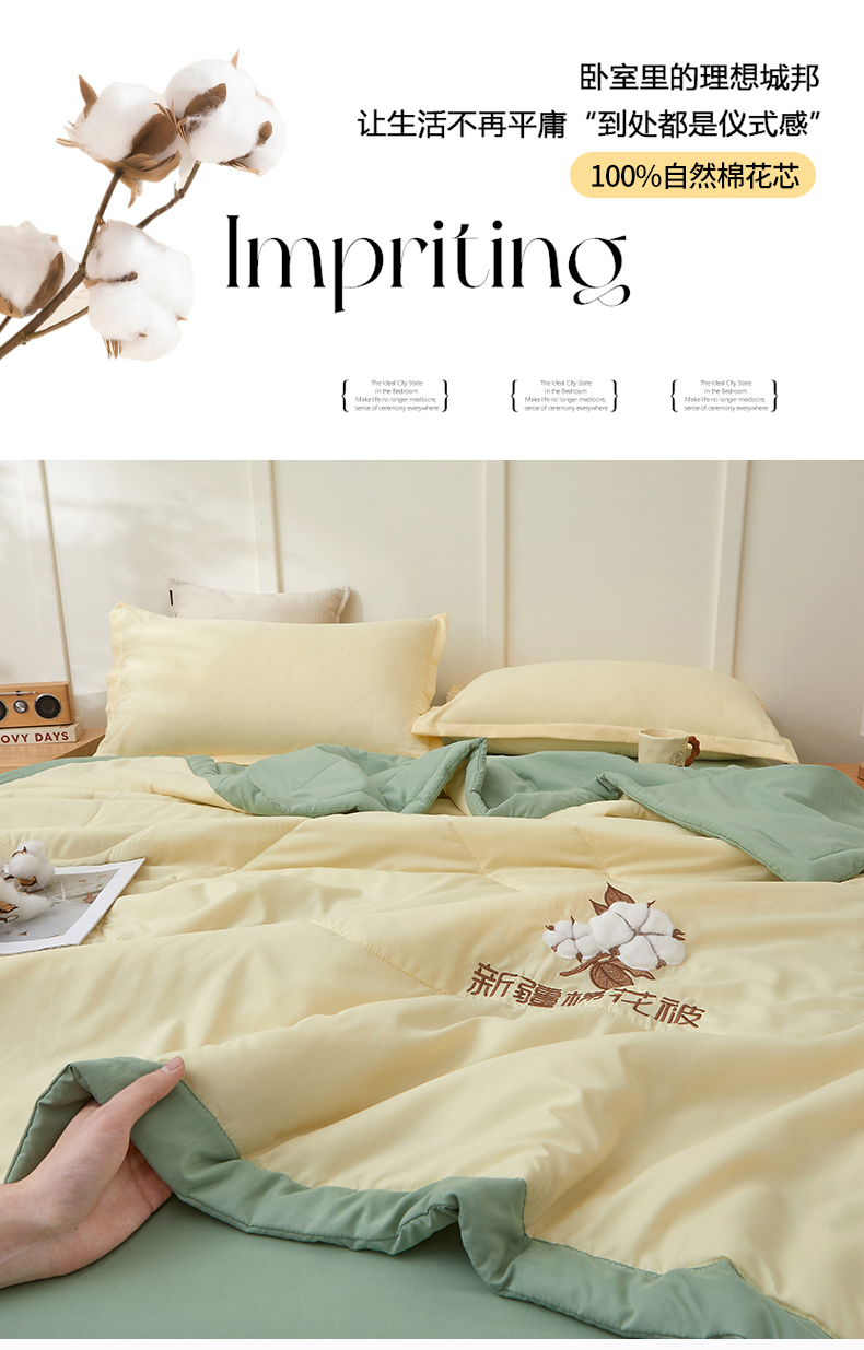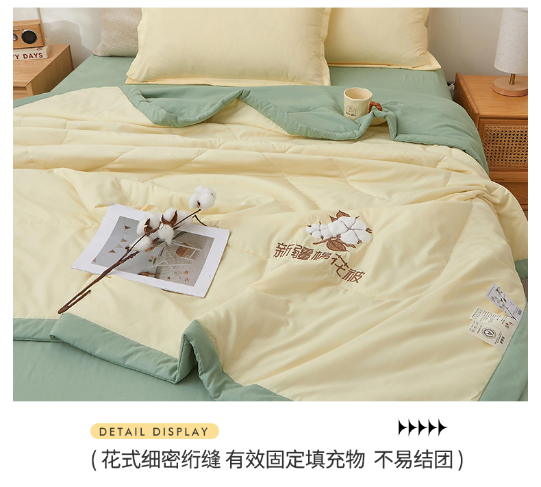 被子 > 夏被 > 西域种棉人·千百笠 2025新款A类100%新疆棉花夏凉被纯棉全棉填充毛巾绣绣花纯色双拼原棉空调被夏被 云暖-奶油黄
