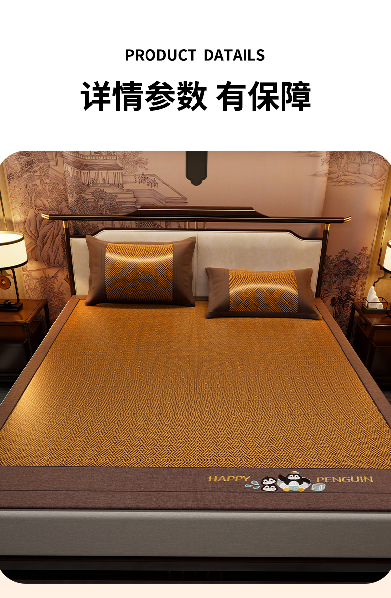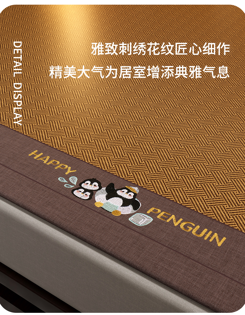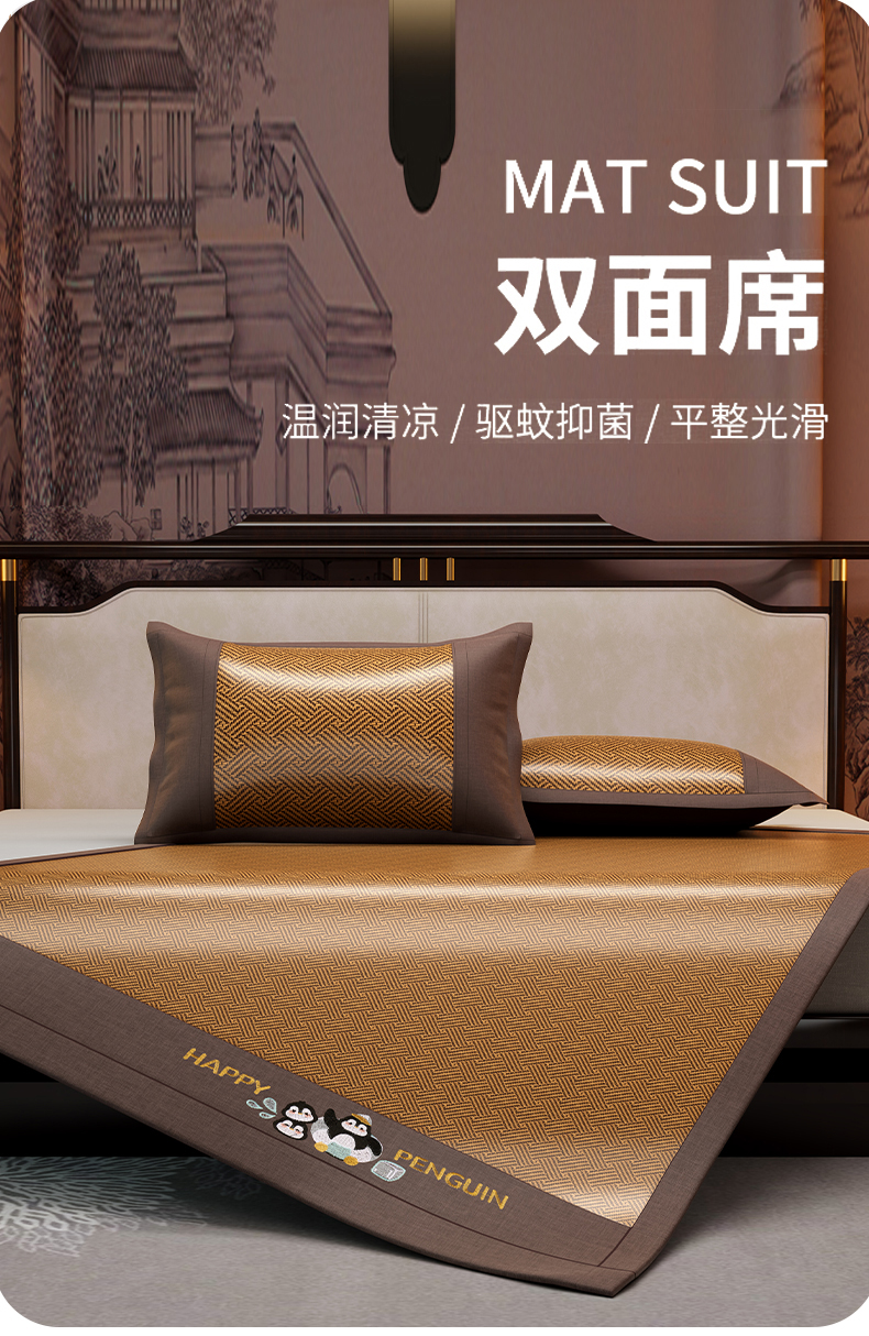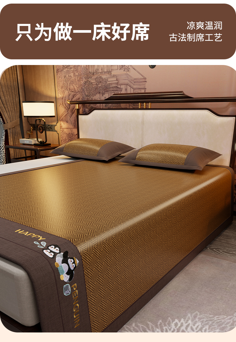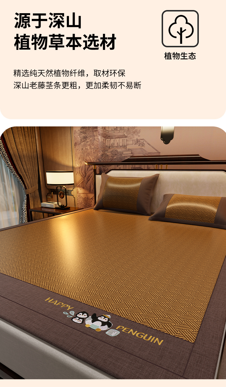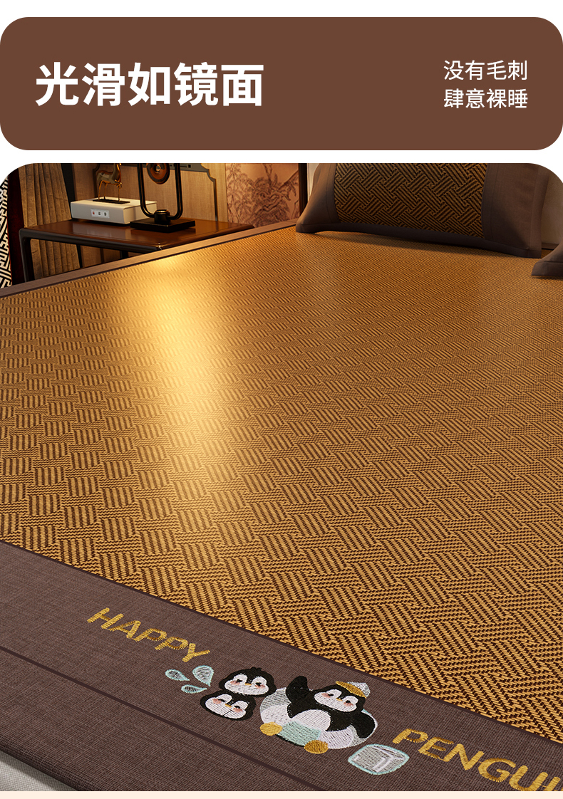 当前位置: 91家纺网 > 商品网购 > 床上用品 > 凉席 > 冰丝席 > 绒艺席业 2025新款艾草藤席冰丝双面席席子凉席 游泳小企鹅-编织纹