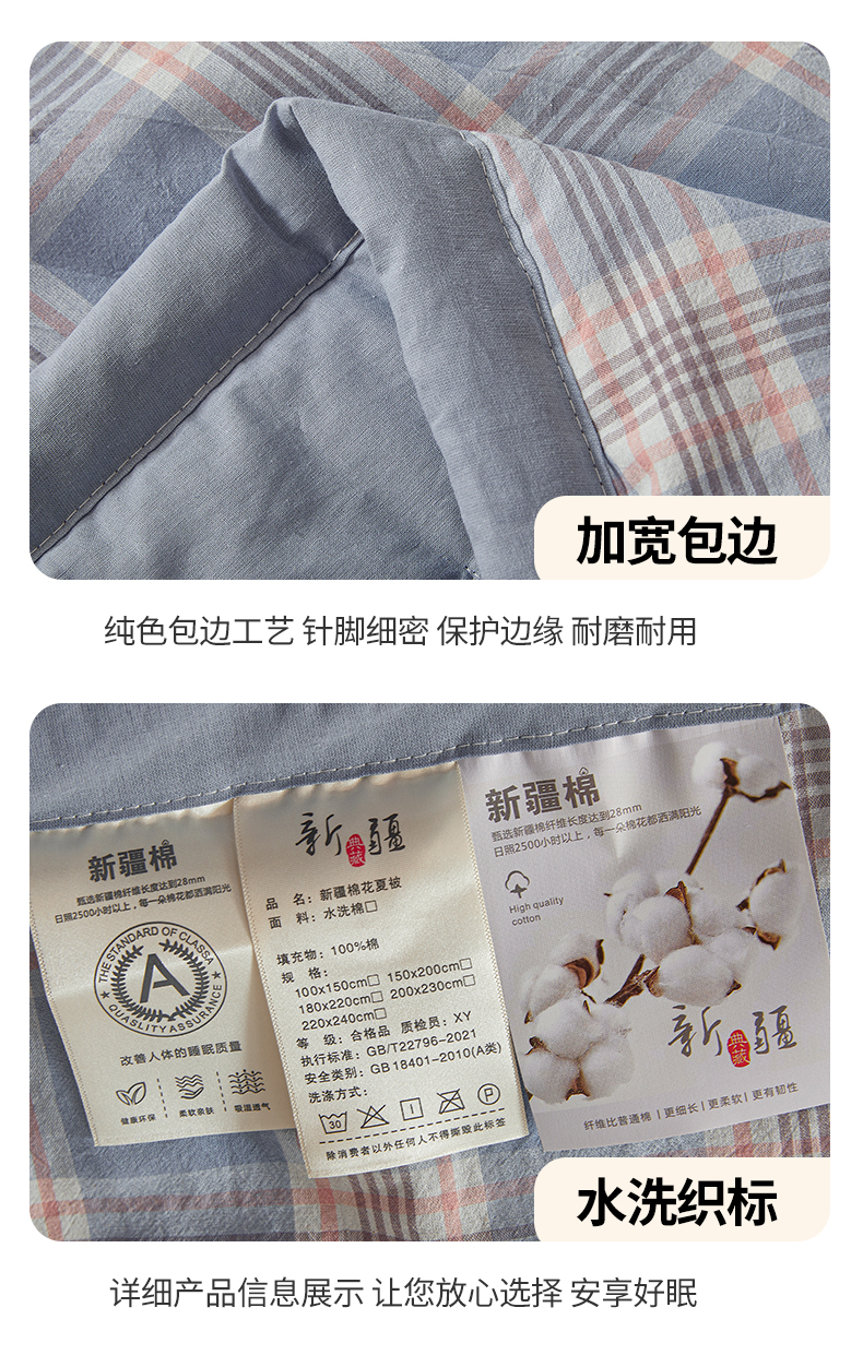 商品名称:西域种棉人·千百笠 2025新款A类100%新疆棉花夏凉被纯棉全棉填充原棉空调被手工宽边水洗棉夏被 罗宾格