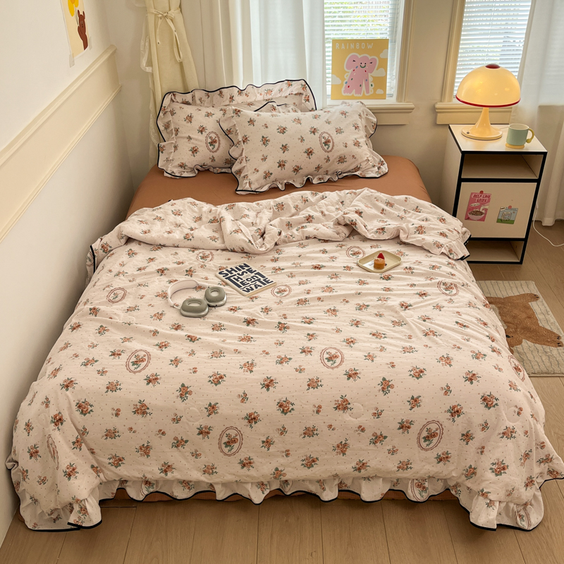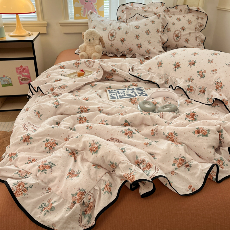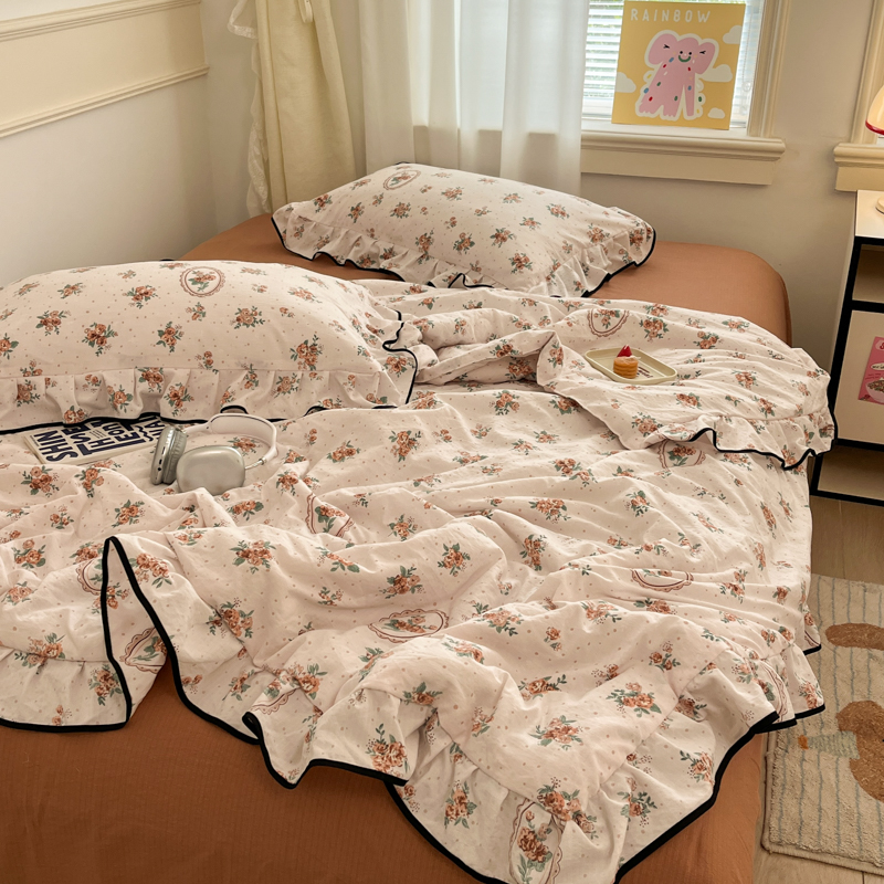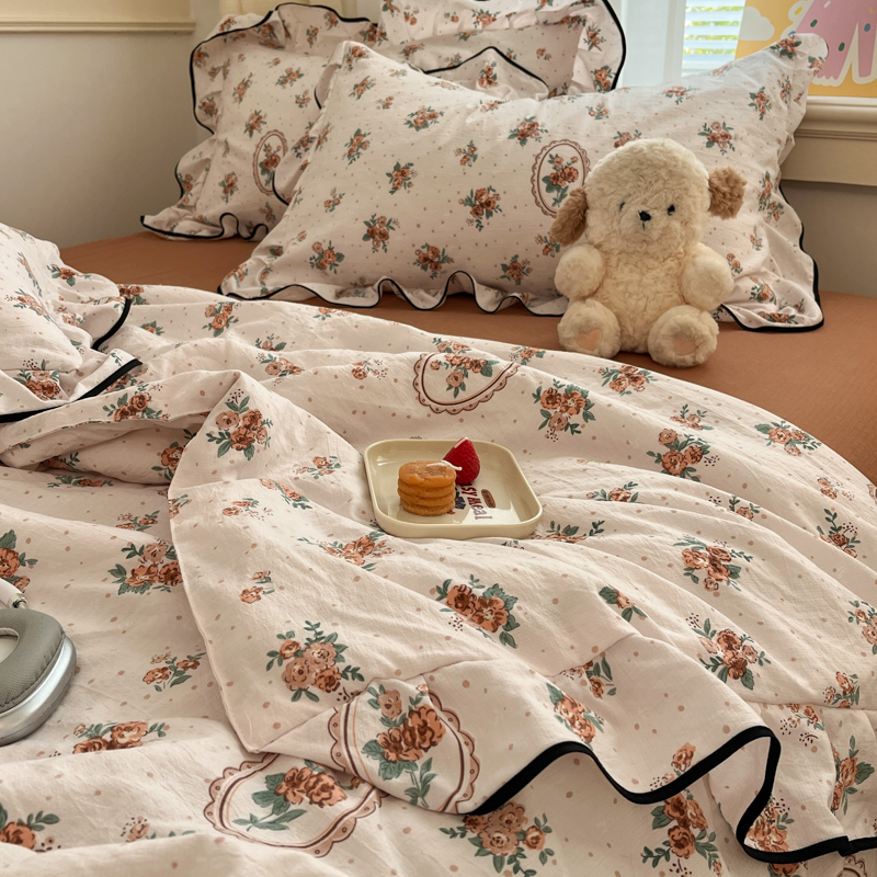 商品名称:欧尚 2025新款细黑边夏被床单床盖三件套 秘密花园