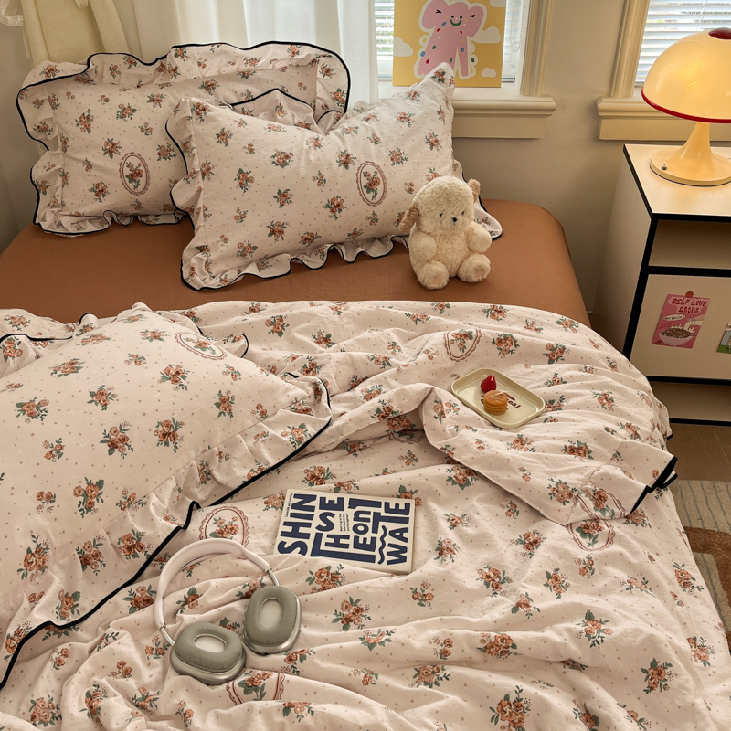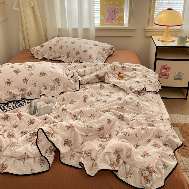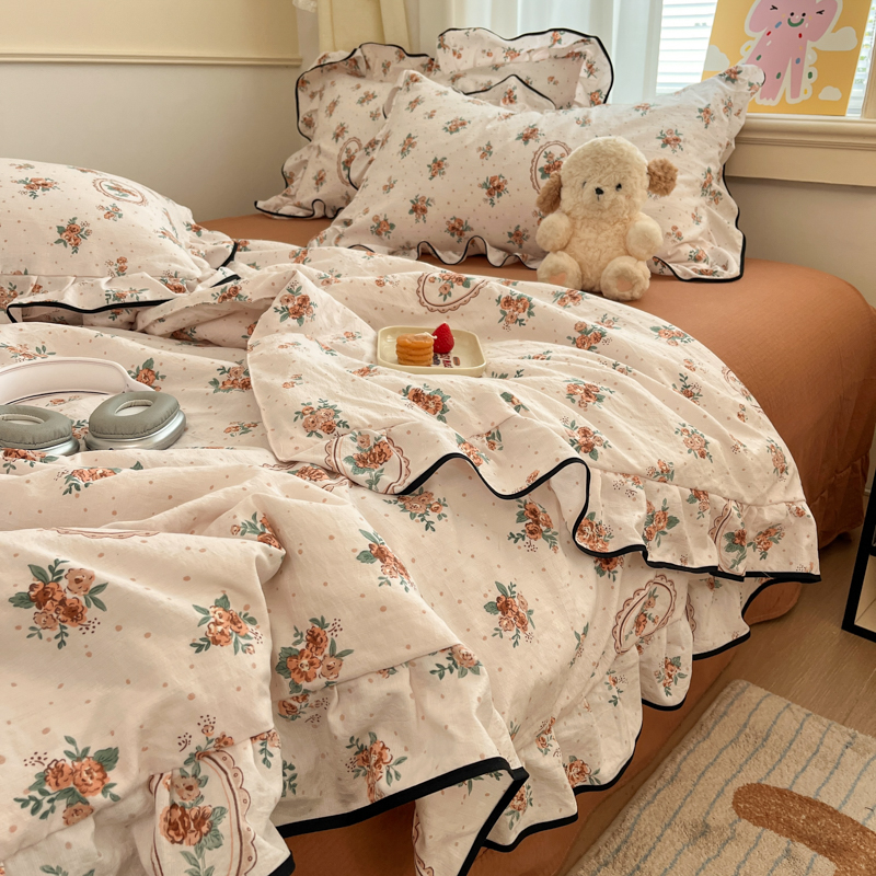 (总)欧尚 2026新款花边床盖四件套,春和,花束,花野,灰樱桃,咖爱心,咖豹纹,咖啡小猫,梨花落,绿爱心,梦境,木马,奶油波点,暖橘枝,暖心,人间草木,田园兔,小女孩,星愿,摇摇马,紫爱心,紫豹纹,紫苏