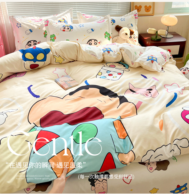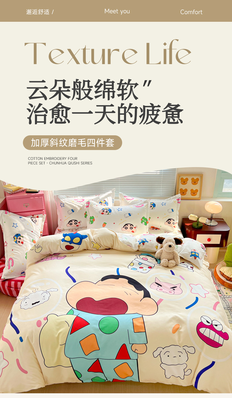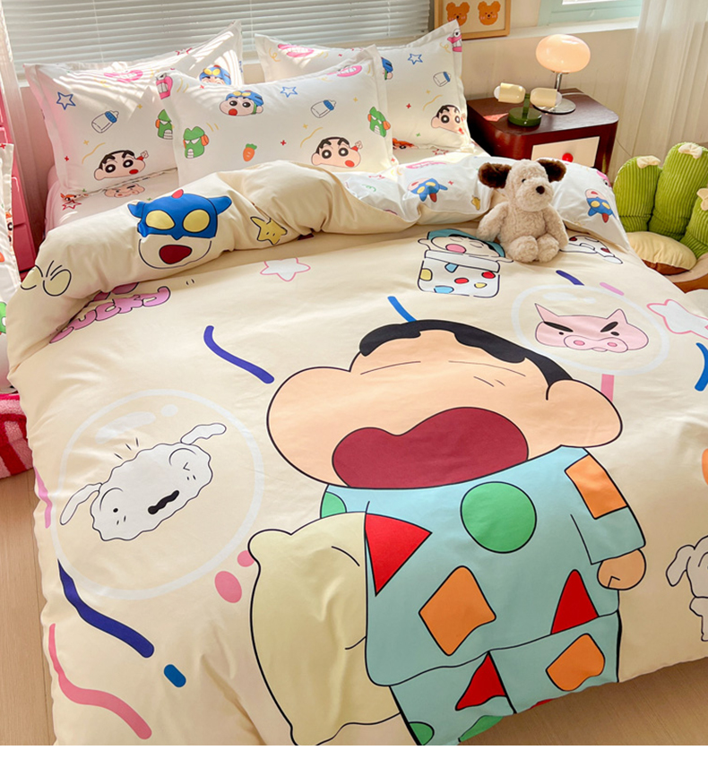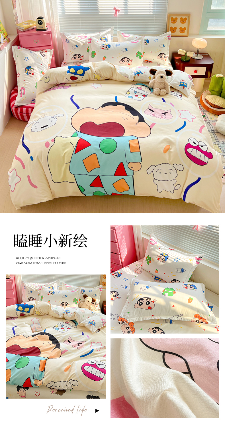 (总)KT猫直营店 2025新款卡通斜纹磨毛大版四件套,彩虹小新,蜡笔小新,蓝莓小新,萌动小新,奶油小新,俏皮小新,小新飞扬,快乐的小新,童趣小新,小新之梦
