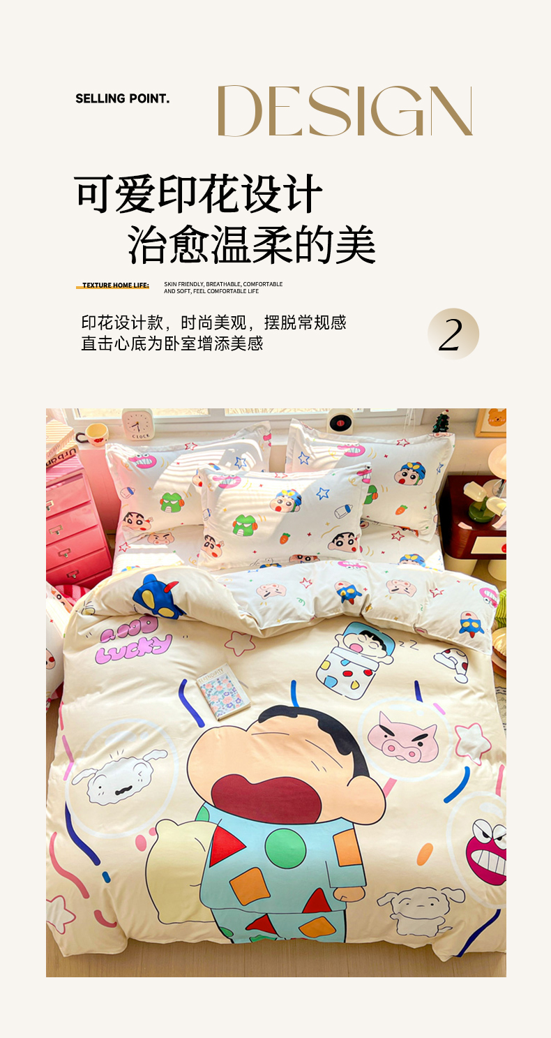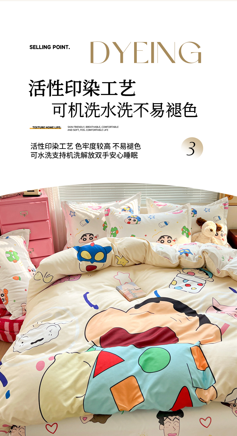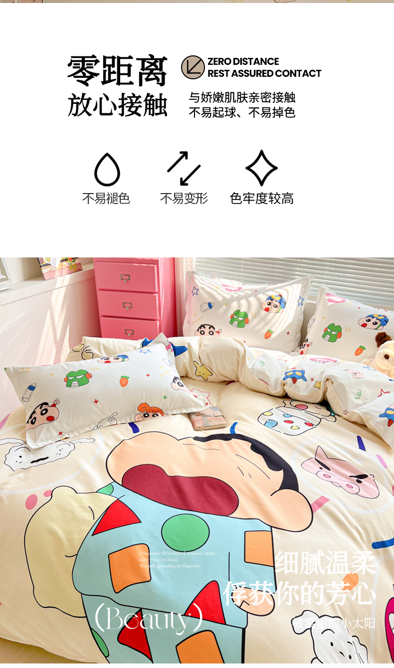 (总)KT猫直营店 2025新款卡通斜纹磨毛大版四件套,彩虹小新,蜡笔小新,蓝莓小新,萌动小新,奶油小新,俏皮小新,小新飞扬,快乐的小新,童趣小新,小新之梦