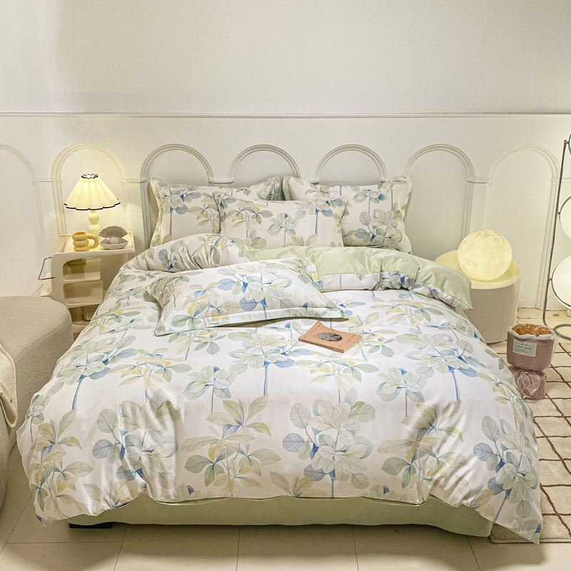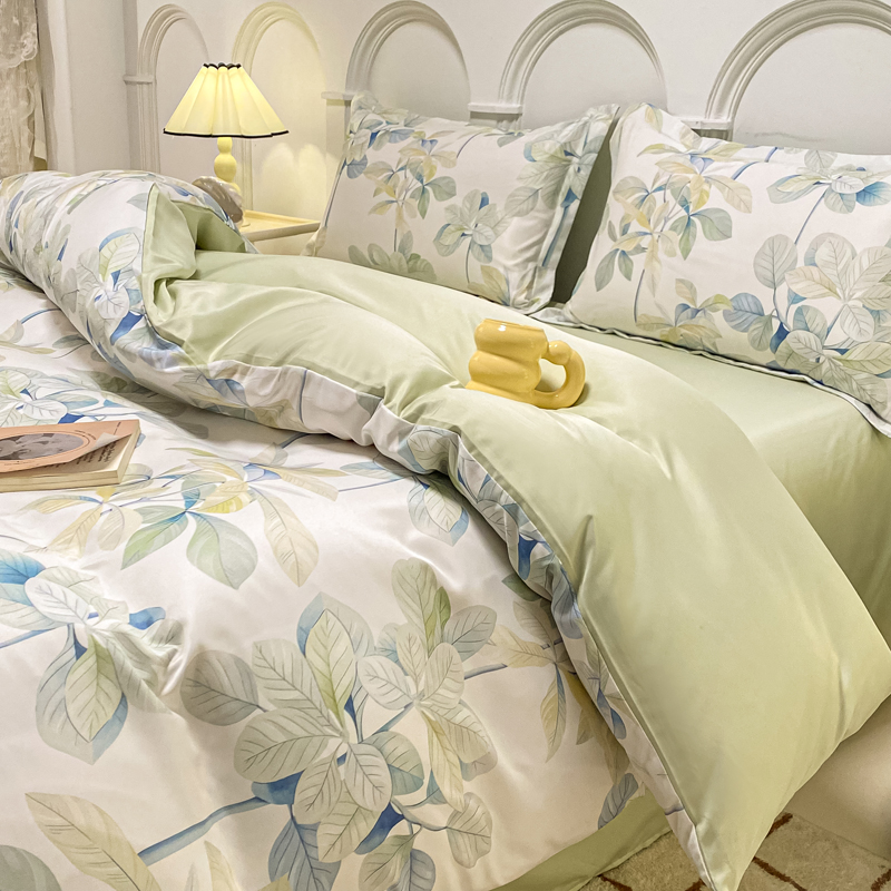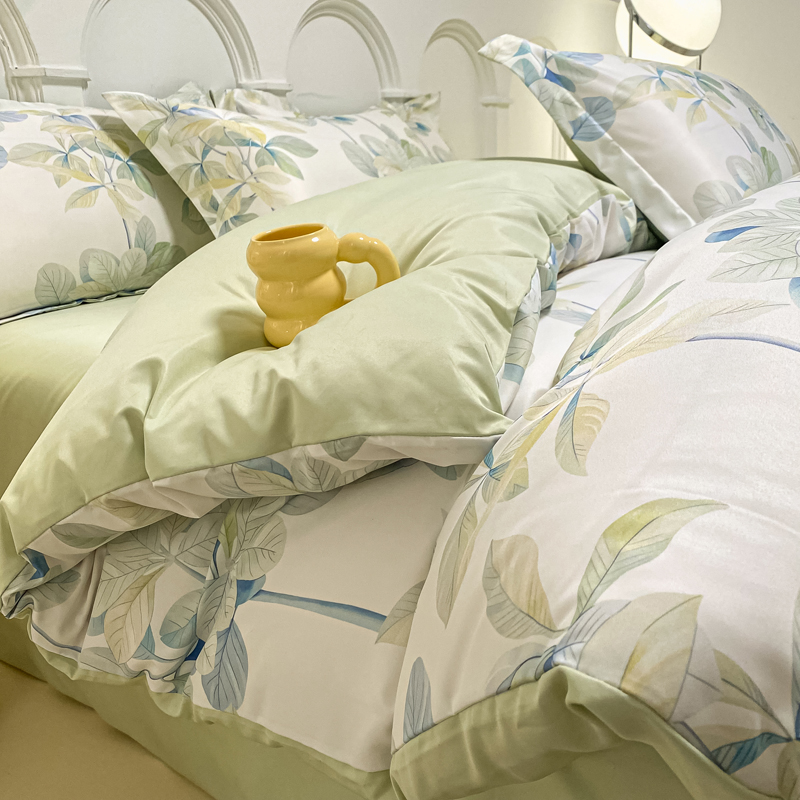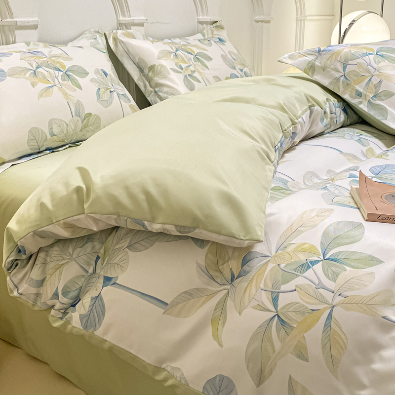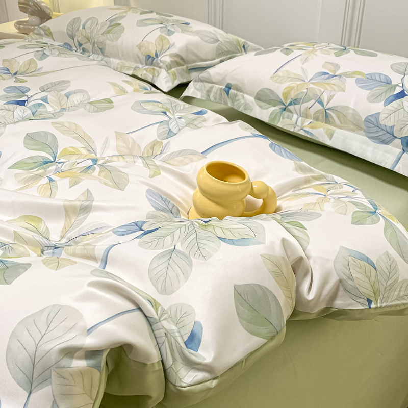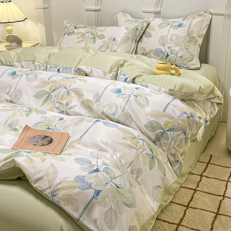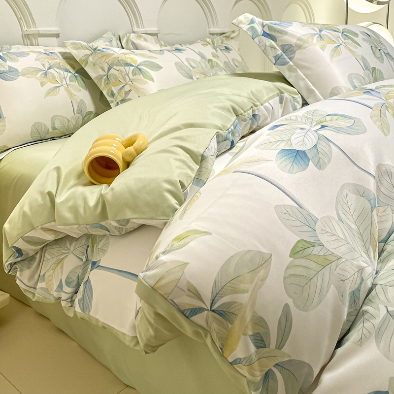 商品名称:2025新款水洗冰丝美式数码印花四件套轻奢时尚北欧风床上用品学生宿舍三四件套 绿叶花园