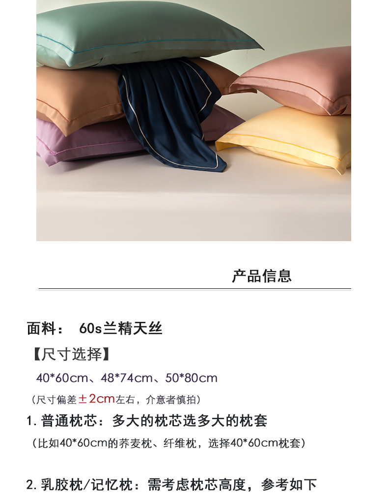 商品名称:百寐 2025夏季凉感60S进口兰精天丝枕套50*80/40*60枕芯保护套莱赛尔纤维 芝兰紫
