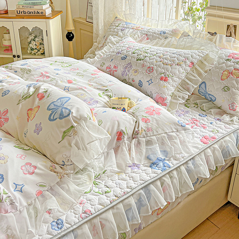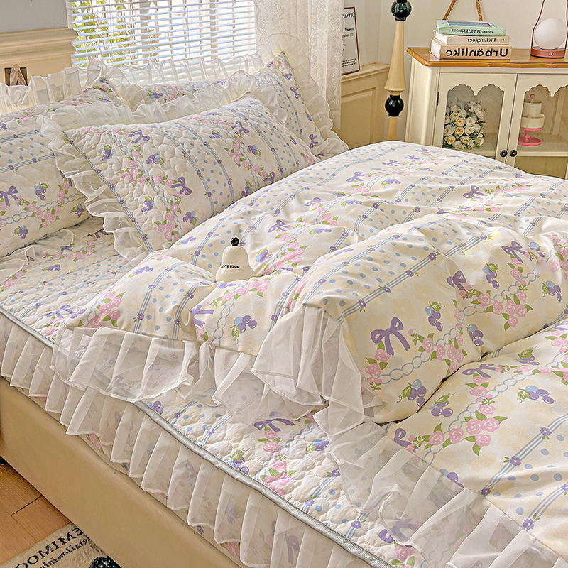 商品名称:艾橙家纺 2025新款雪纺花边加棉床笠款单品四件套-单被套 半旧时光