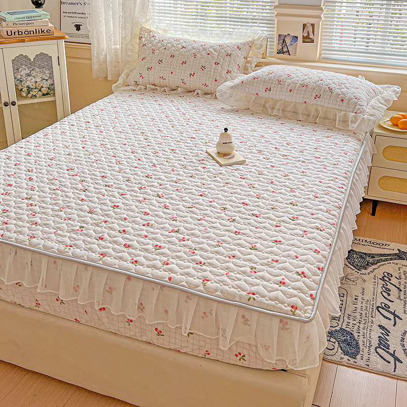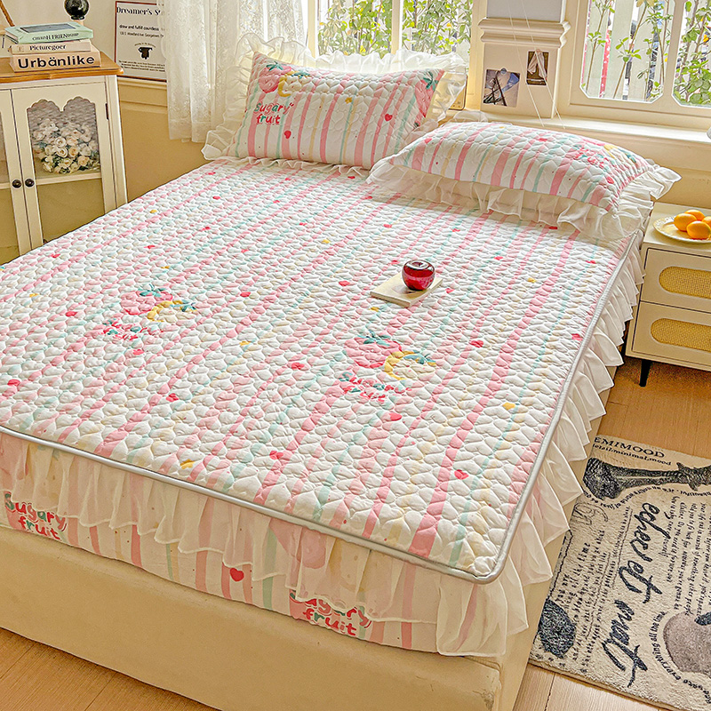 艾橙家纺 2025新款雪纺花边加棉床笠款单品四件套 糖果草莓
