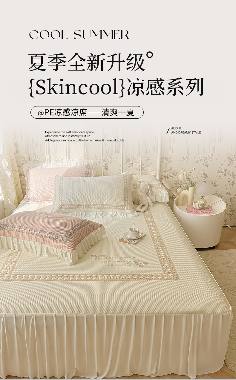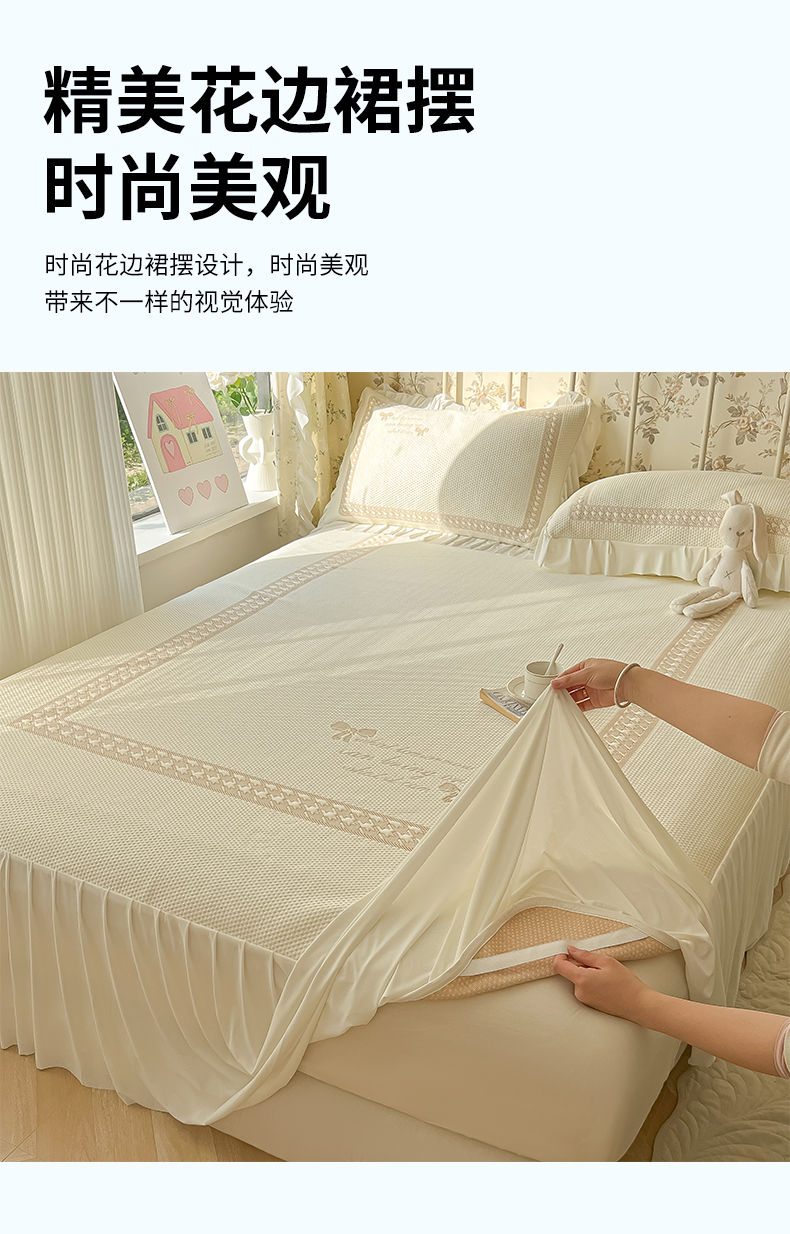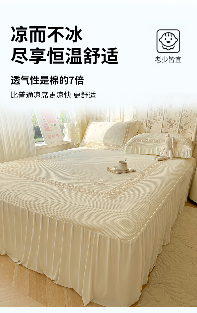 商品名称:繁花家居 2025新款冰岛赋能凉席席子凉席三件套-蝴蝶公主 蝴蝶公主-米