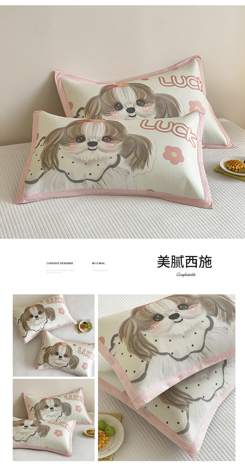 商品名称:安哆啦家纺 2025新款A类大版印花冰藤儿童幼儿园卡通萌宠系列凉席单枕套 美腻西施