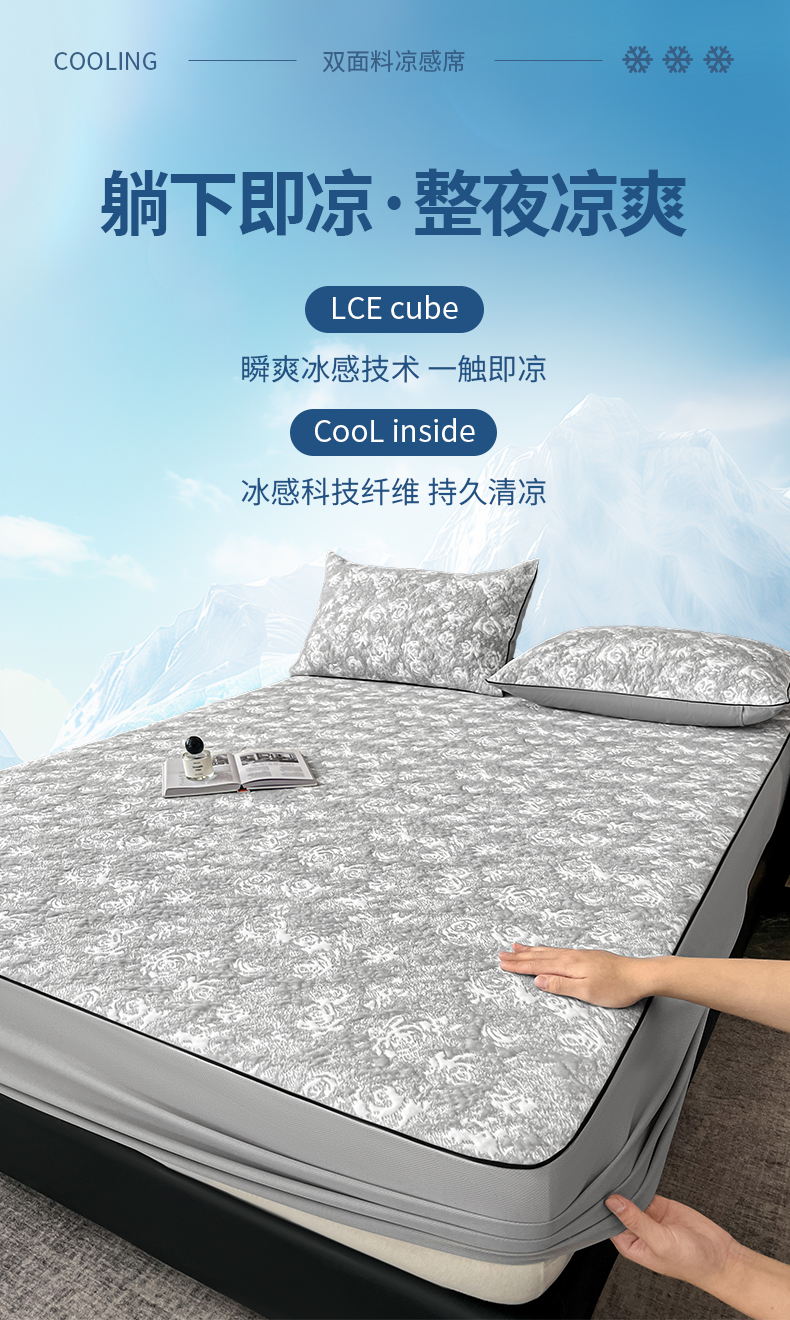 (总)野马寝具跨境电商专供 2025新款高分子冰感垫软凉席,斜方格,正方格