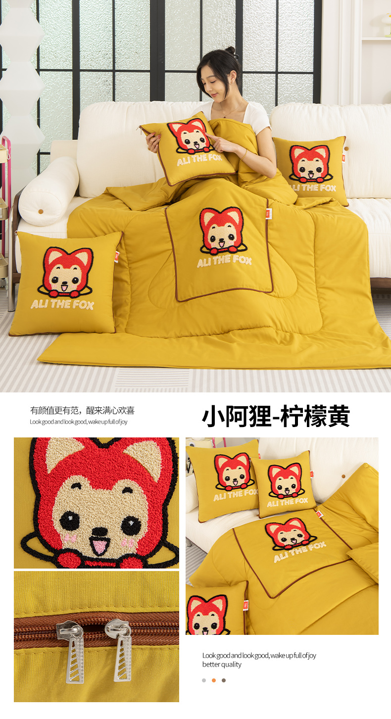 商品名称:宝马家纺(原梦童画)2025新款毛巾绣阿狸四季款抱枕被 小阿狸-柠檬黄