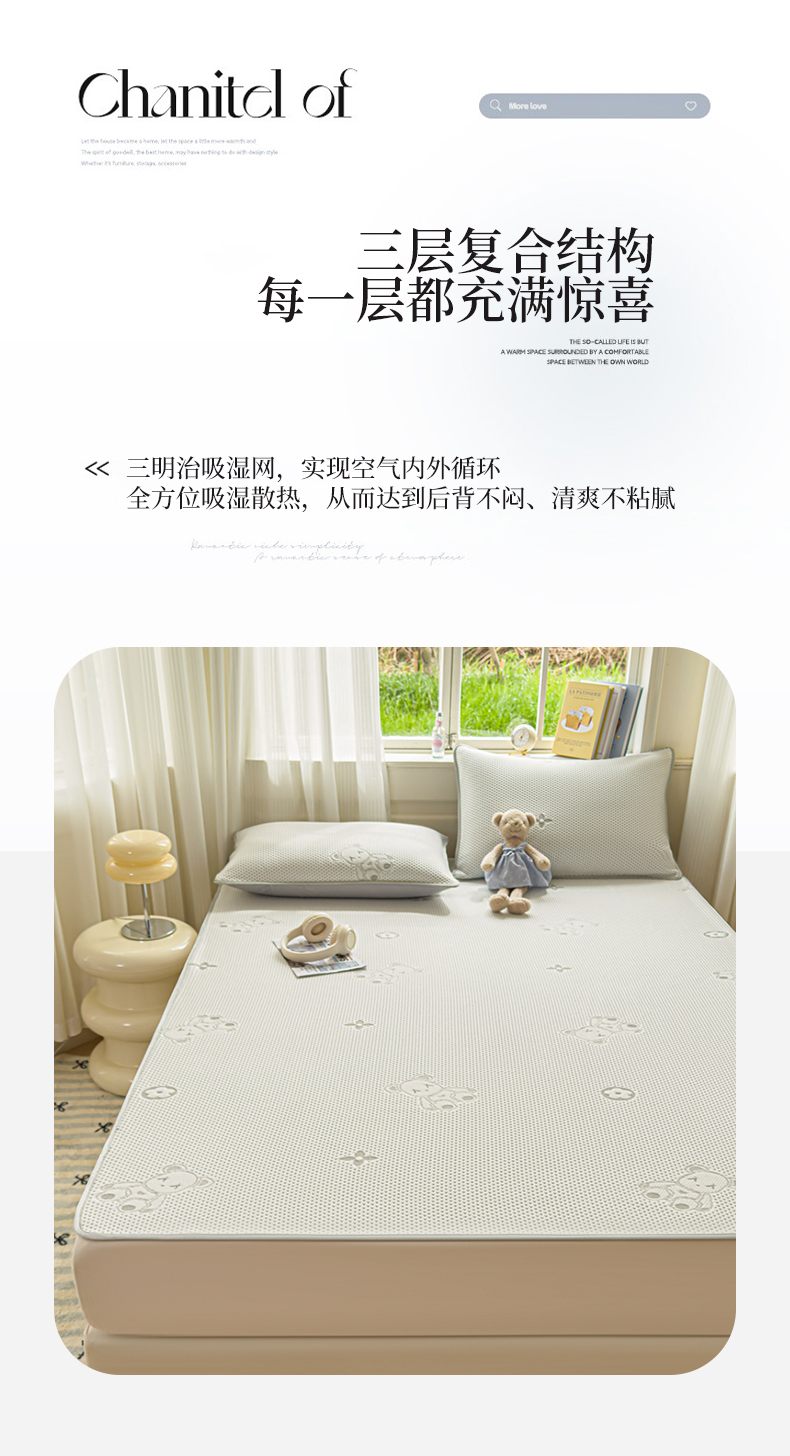 吉祥2025新款提花凉豆豆凉席席子凉豆豆凉席系列 泰迪熊灰