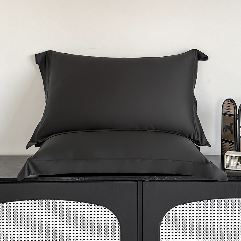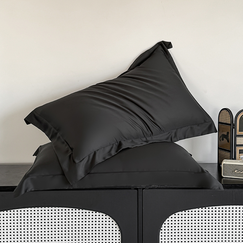 商品名称:金喜 2025新款LF级60支莱赛尔天丝枕套宽边枕套 乌木黑