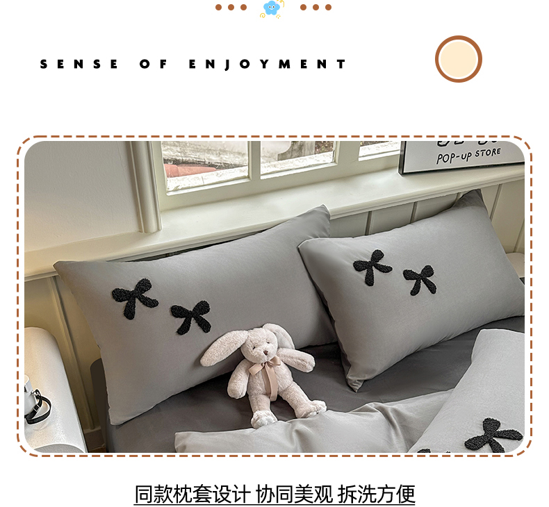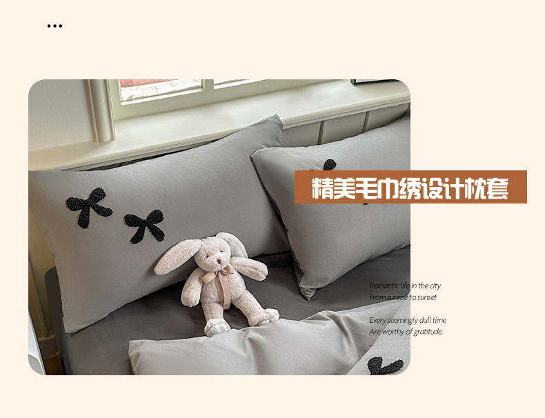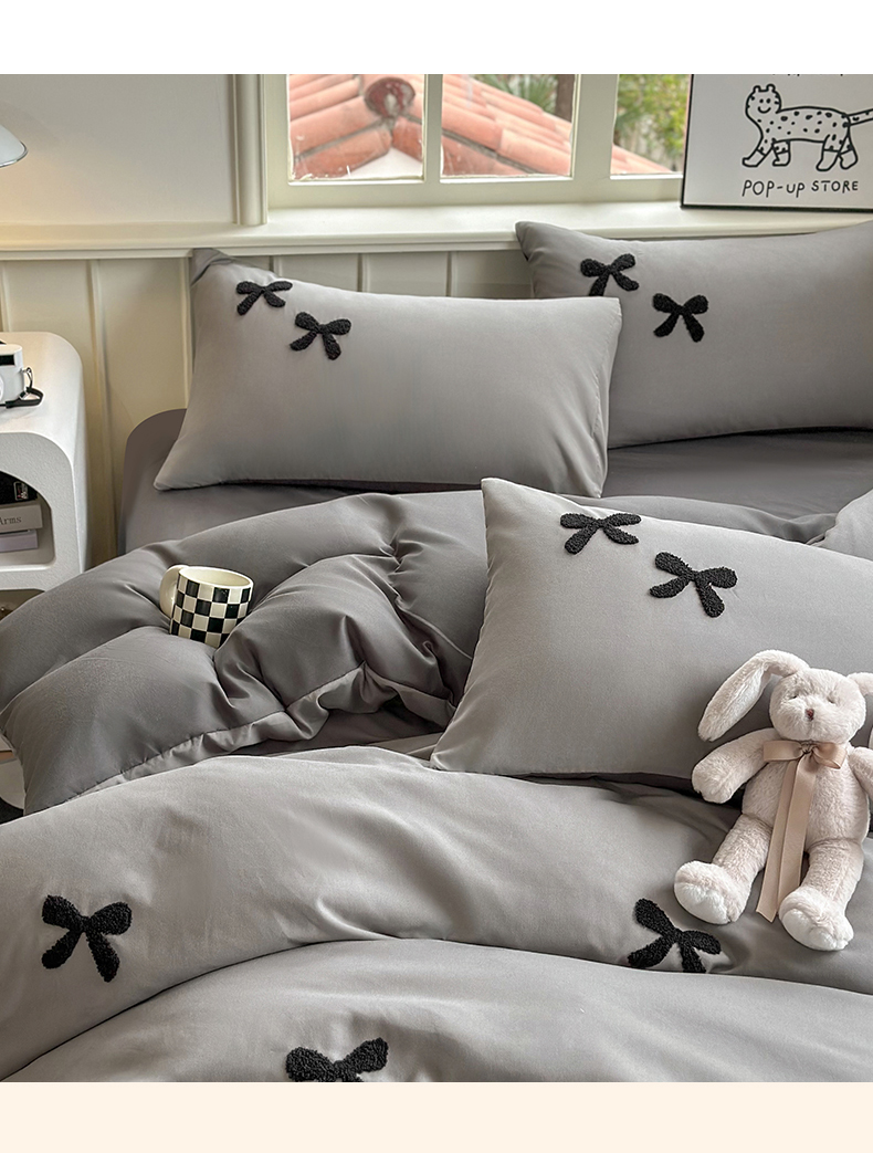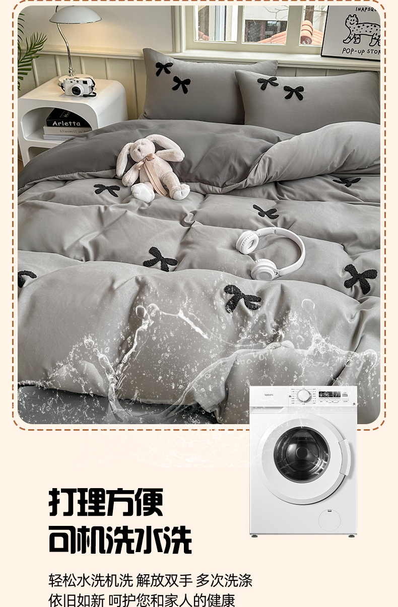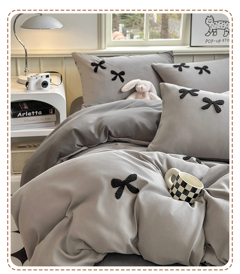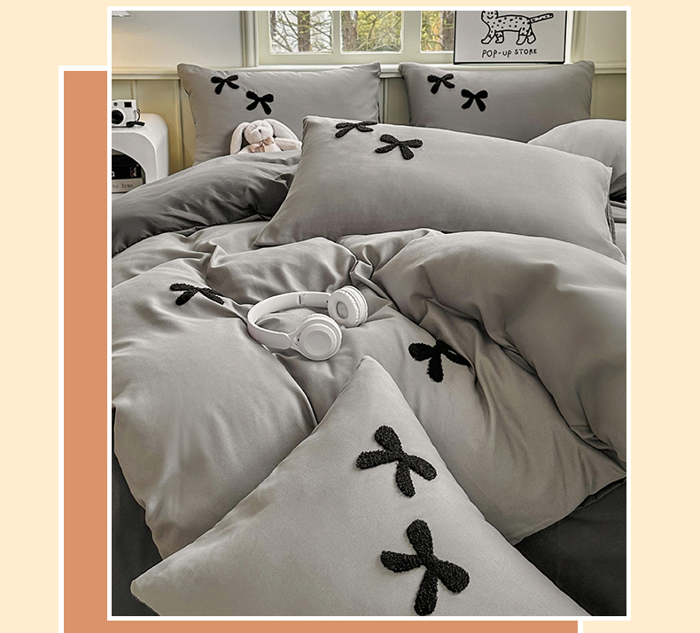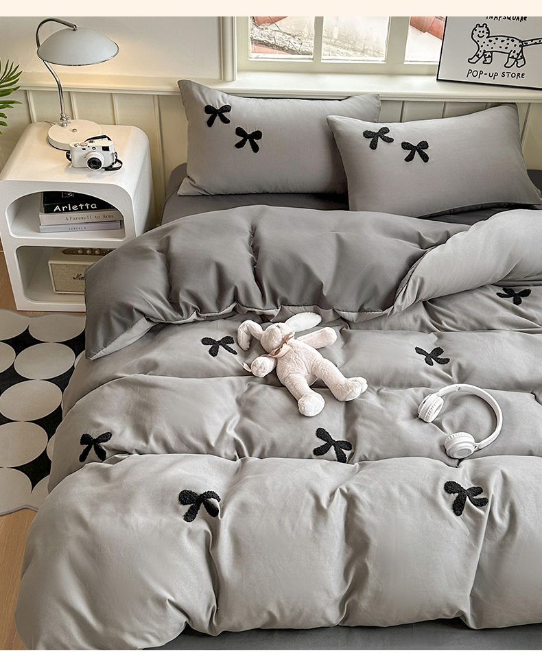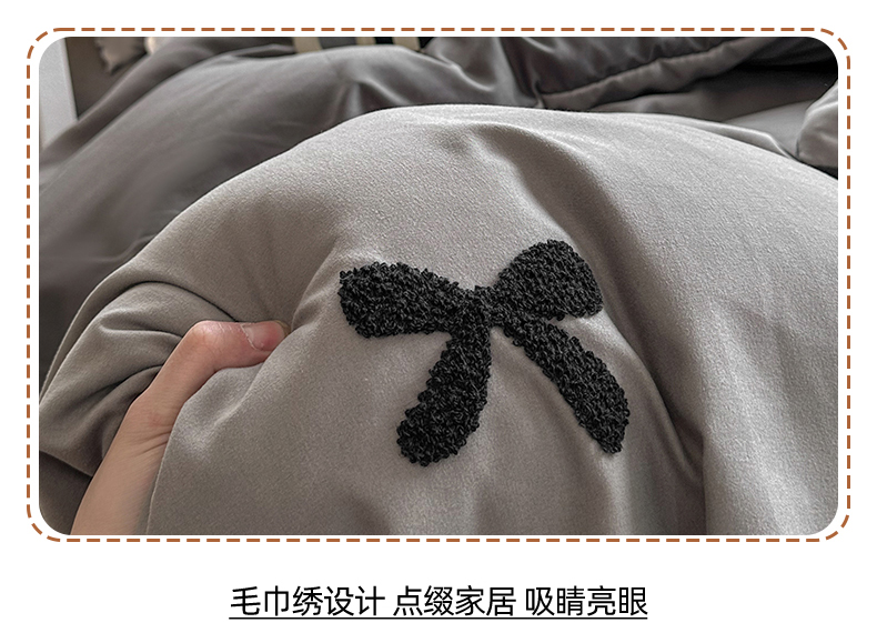 • 91家纺网 家纺一手货源 找家纺 迪拜家纺 2025新款加厚水洗棉四件套-蝴蝶结 蝴蝶结-灰