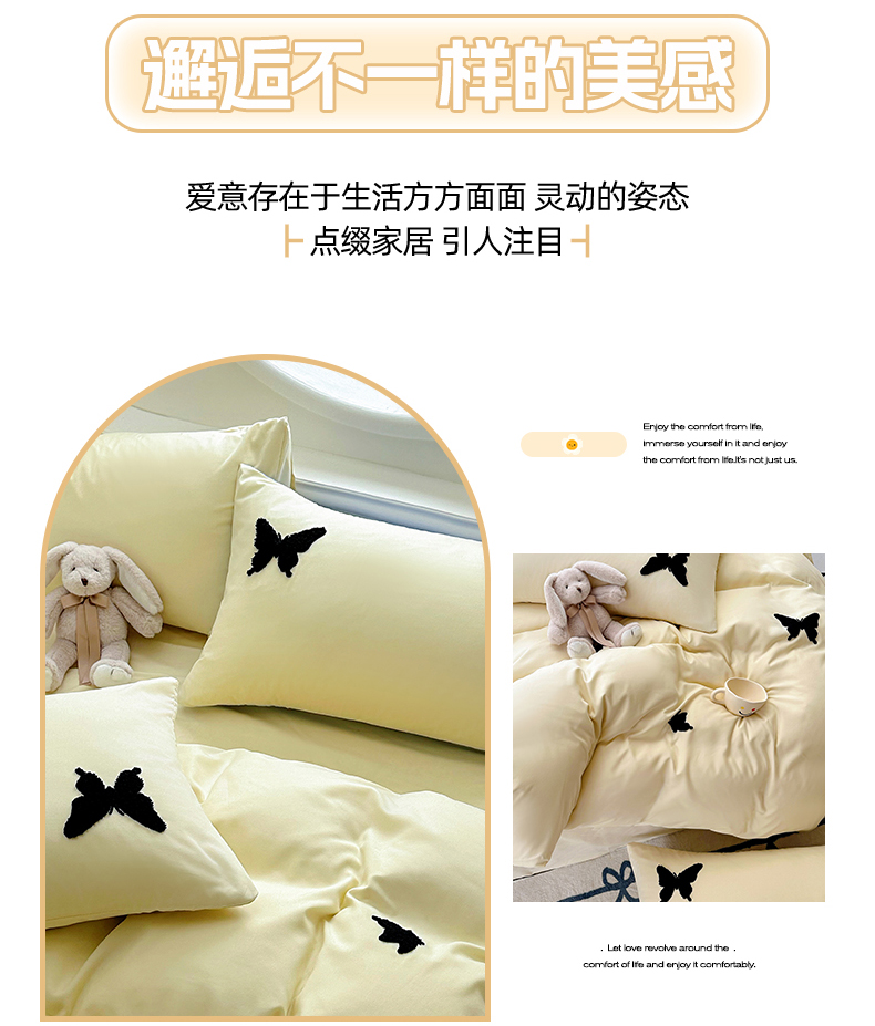 当前位置: 91家纺网 > 商品网购 > 床品套件 > 四件套 > 水洗棉四件套 > 易展家居 2025新款加厚水洗棉四件套-蝴蝶 蝴蝶-黄