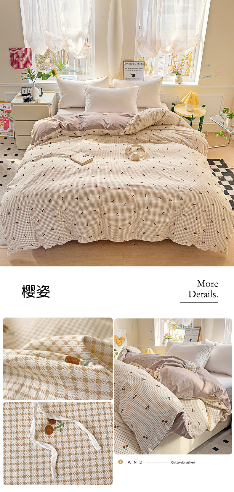 • 91家纺网 家纺一手货源 找家纺 依庭 2025新款全棉印花花卉款四件套单品系列-单被套 樱姿