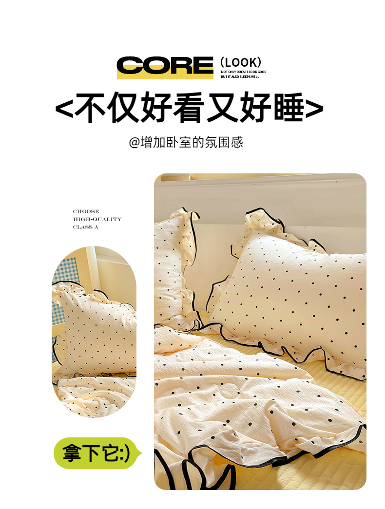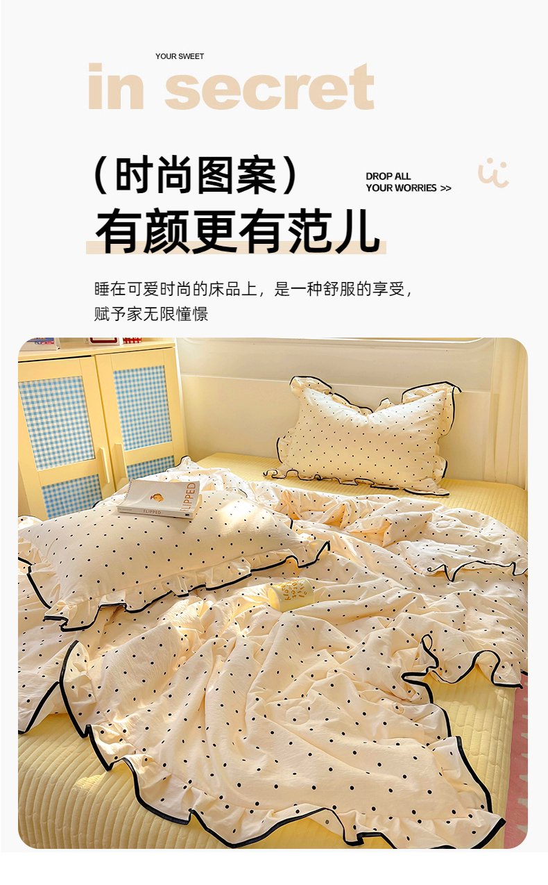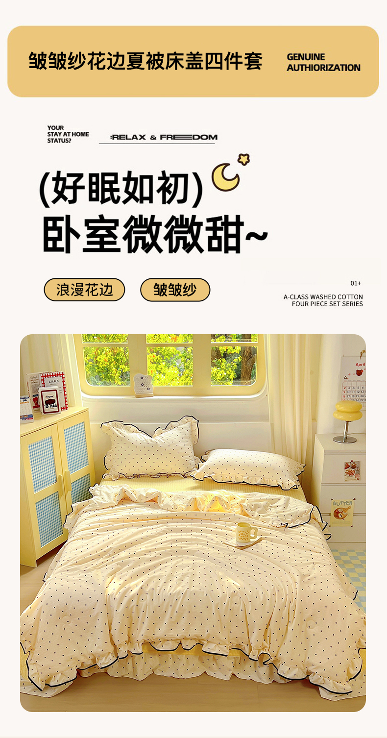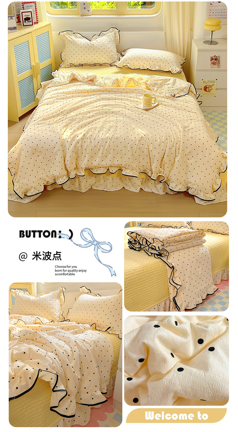 商品名称:美梦家纺 2025新款皱皱纱花边夏被床盖四件套 米波点
