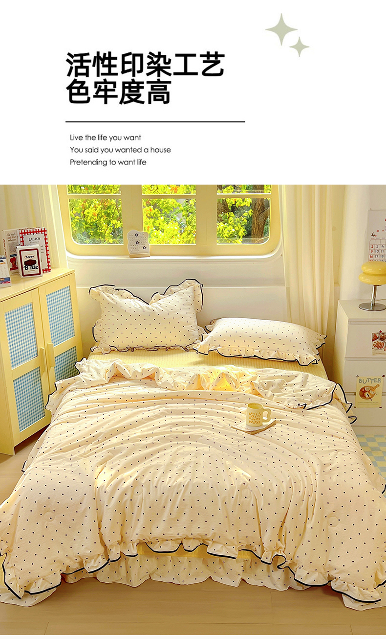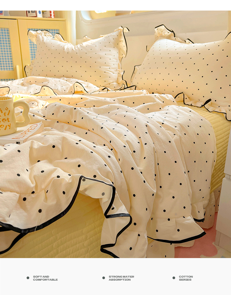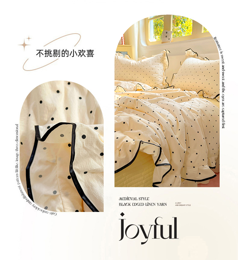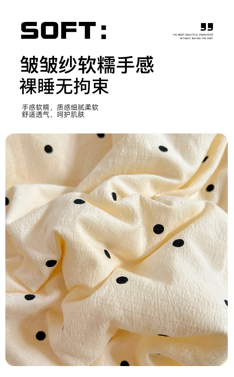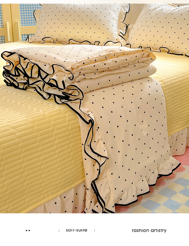 商品名称:美梦家纺 2025新款皱皱纱花边夏被床盖四件套 米波点