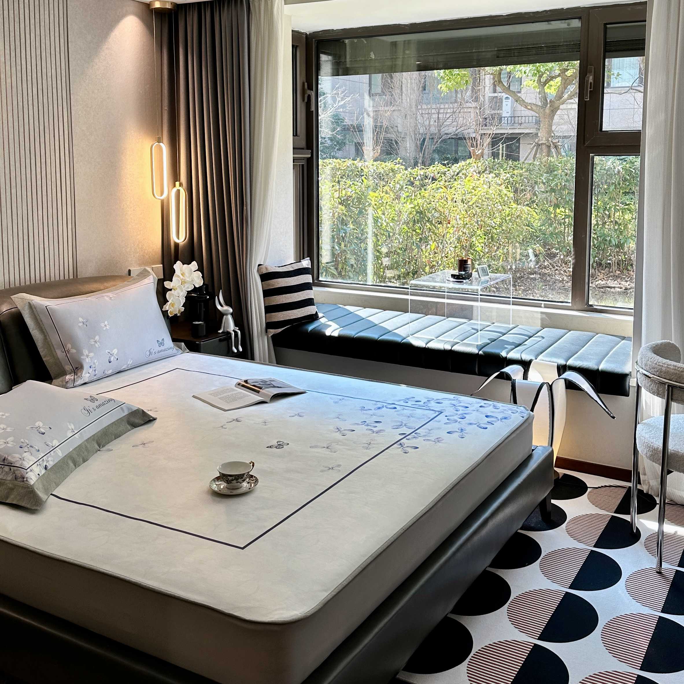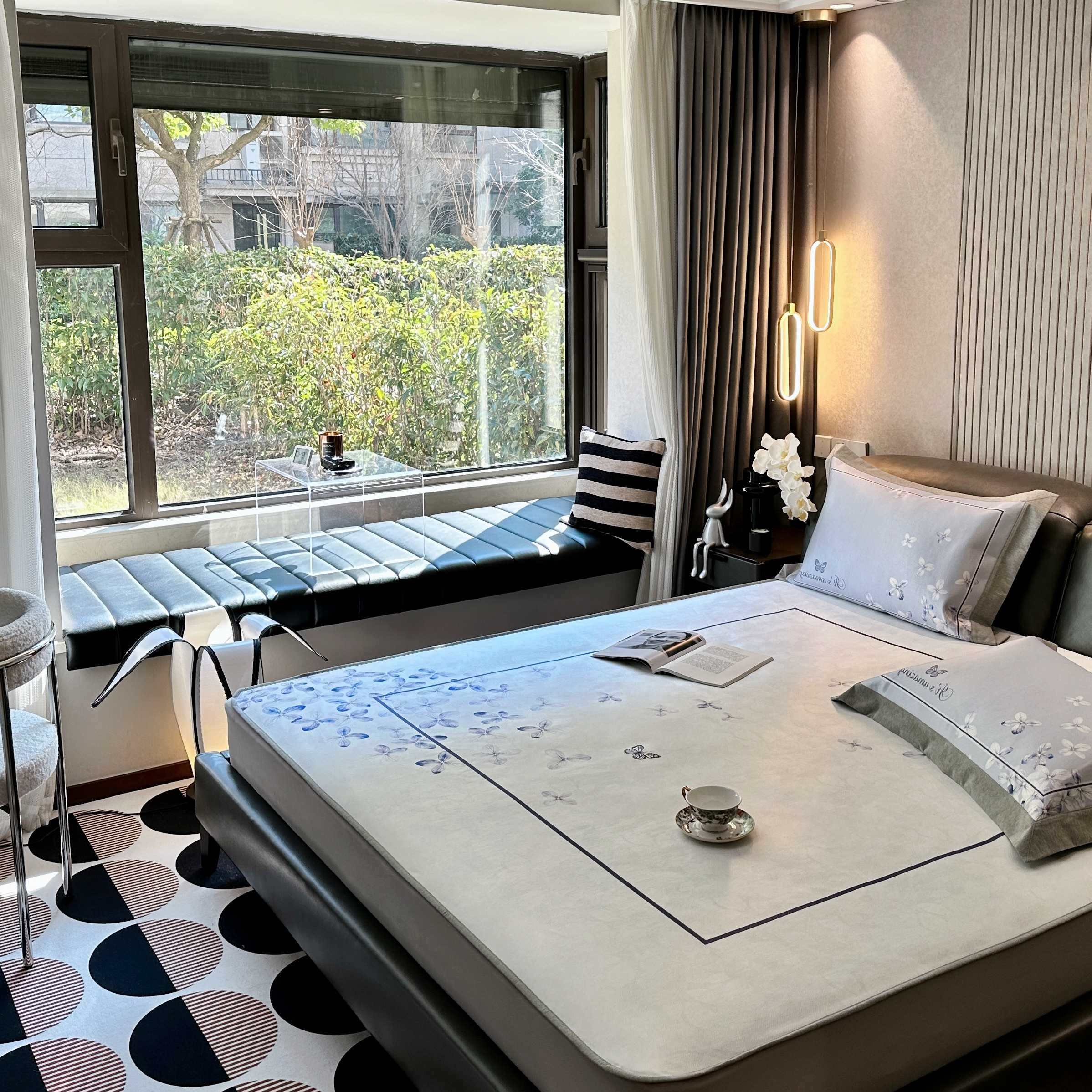 商品名称:JUICY 橘滋家纺 2025新款夏日高端轻奢数码冰丝奢简高级凉席床笠 爱琴海微风